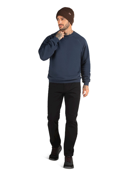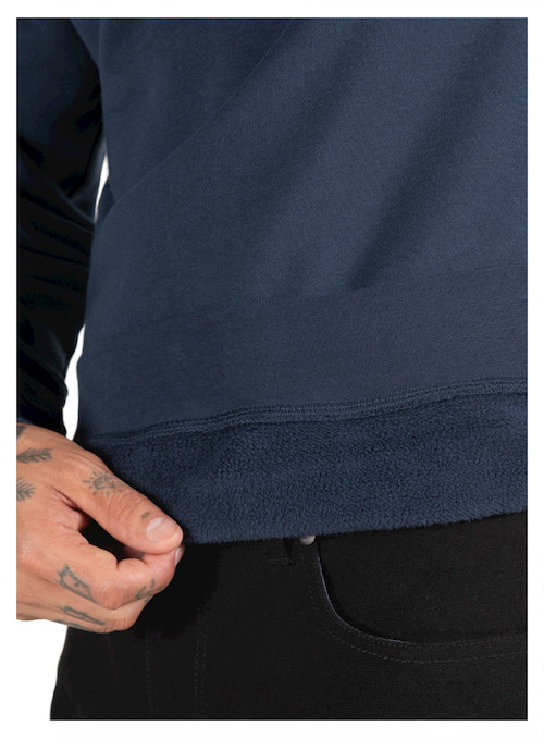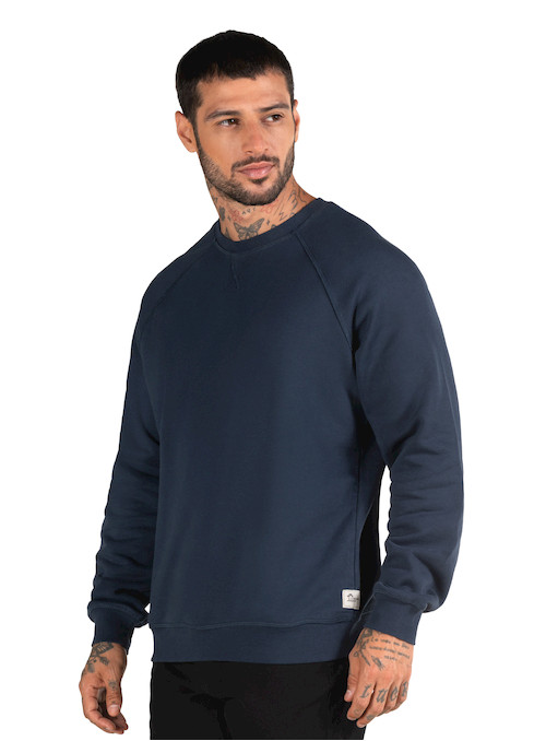 Polerón casual para hombre en color azul, de diseño clásico y manga larga. Confeccionado en una mezcla 85% algodón y 15% poliéster, ofrece tacto suave y buena resistencia al uso diario. Su calce relajado y la tela de peso medio lo hacen cómodo para distintas temperaturas, ideal para capas y para un look limpio y versátil.