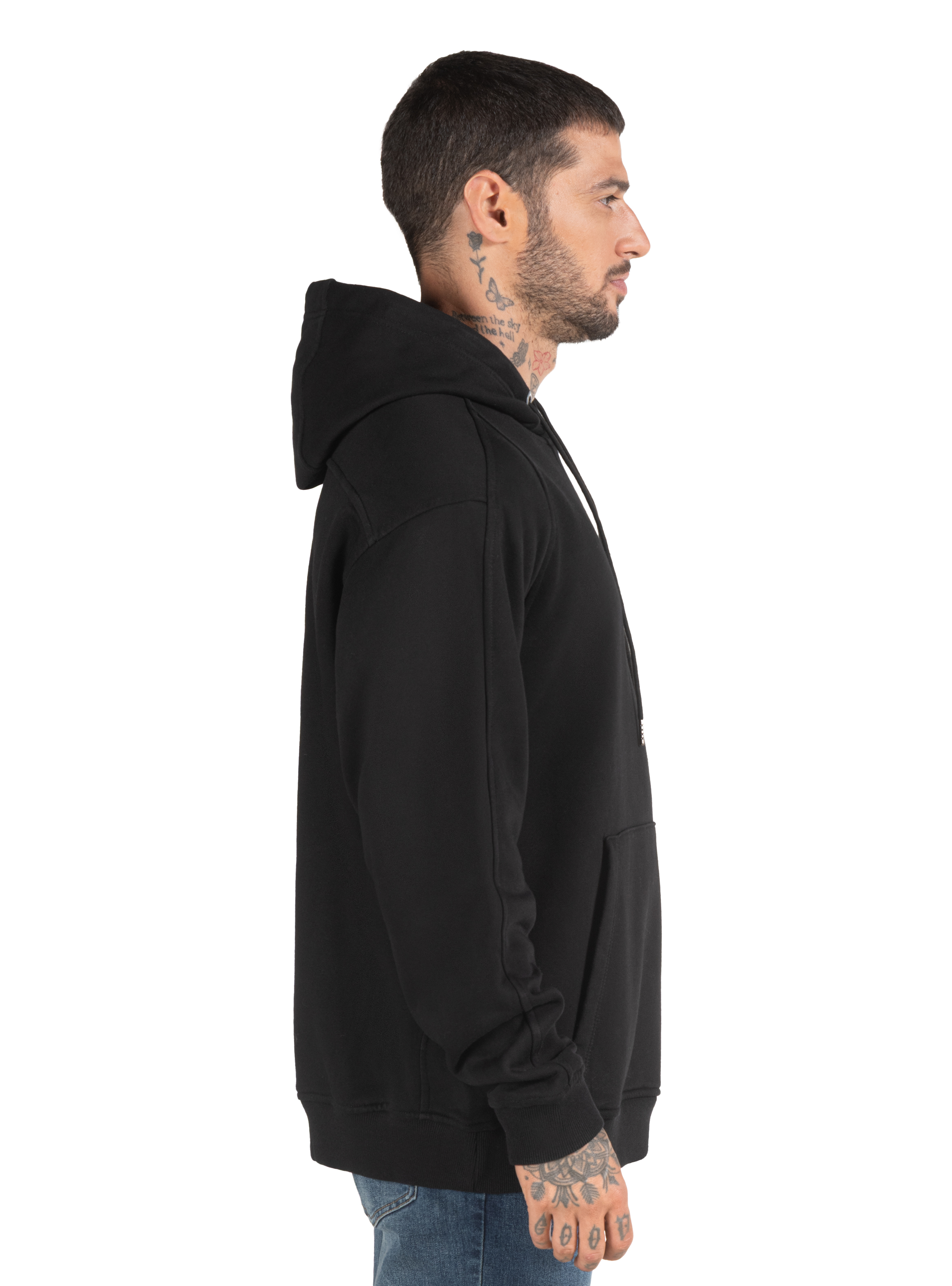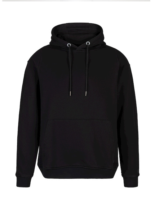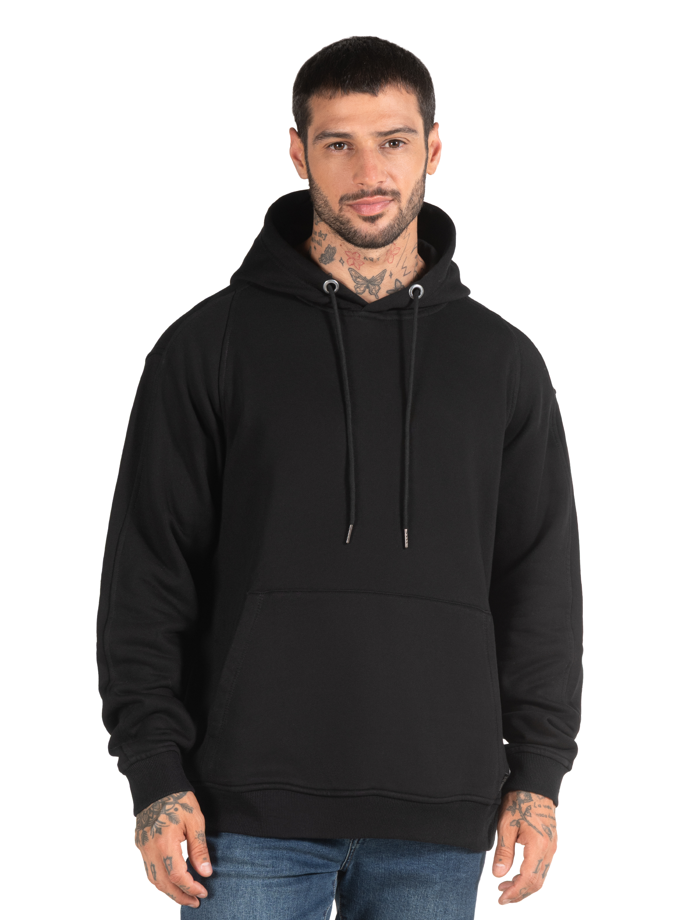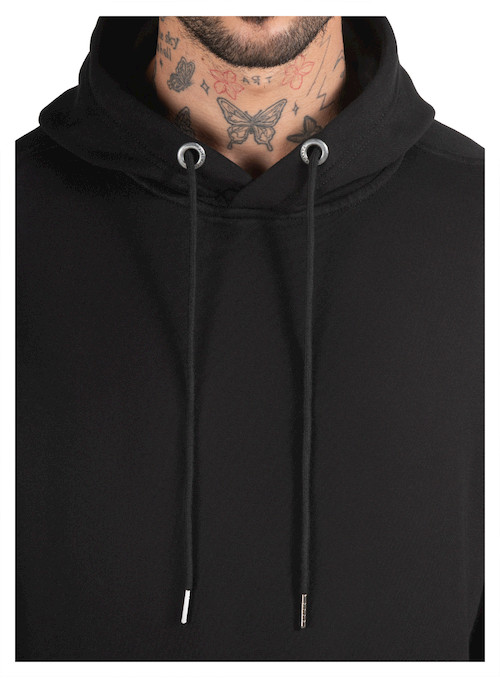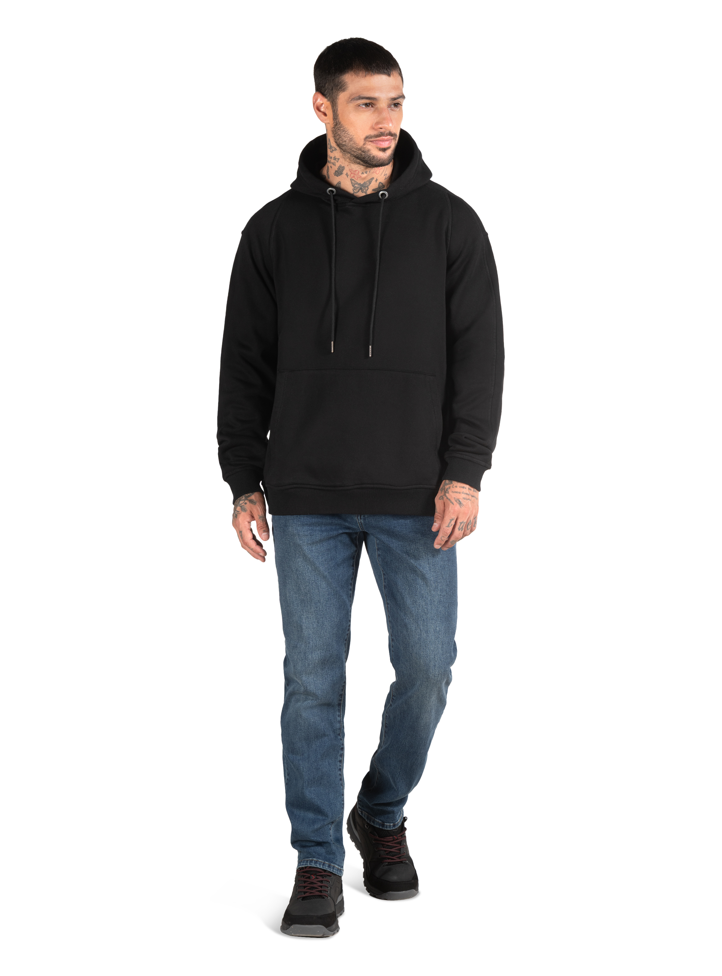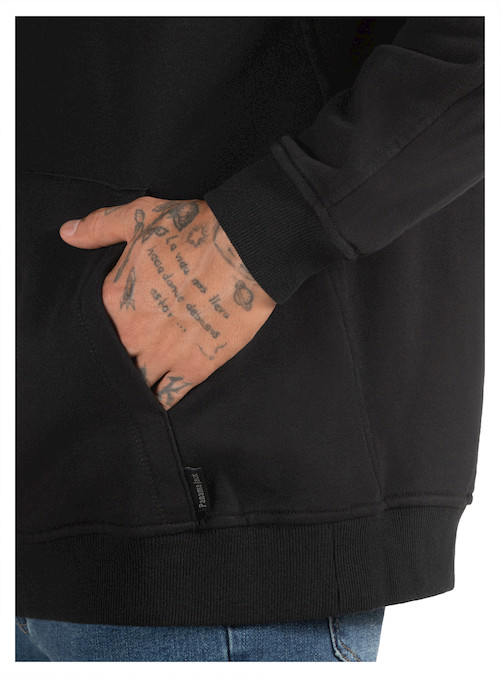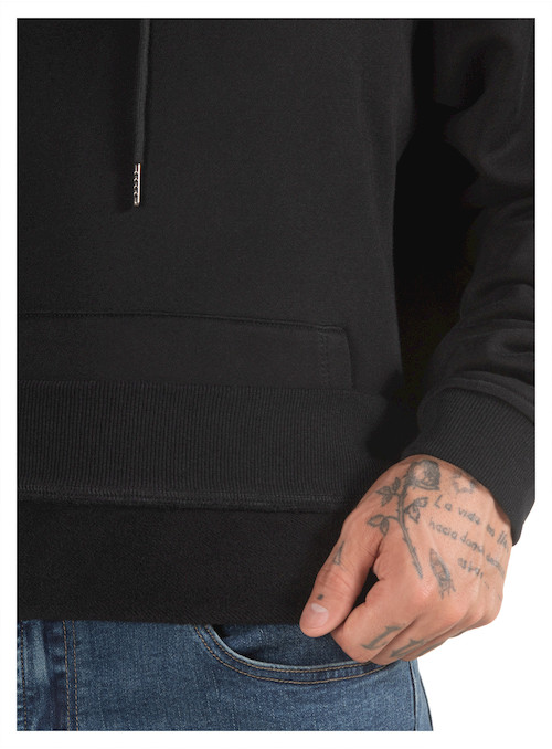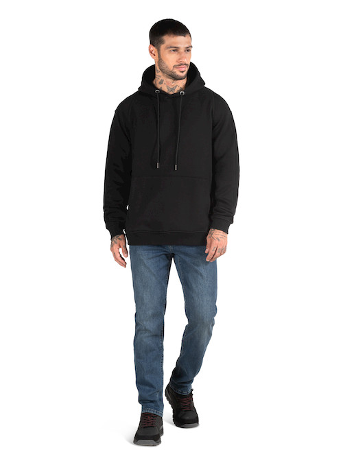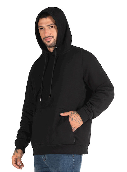 Polerón de hombre en color negro diseñado para brindar comodidad y abrigo en un estilo casual y moderno. Confeccionado en 85% algodón y 15% poliéster, ofrece un tejido grueso y suave que proporciona calidez ideal para el uso diario. Su diseño incluye gorro ajustable con cordón que añade protección en días fríos y un bolsillo frontal tipo canguro perfecto para mantener las manos abrigadas o guardar pequeños objetos. Los puños y pretina elásticos mejoran el ajuste y la comodidad, creando una prenda versátil que se adapta fácilmente a looks urbanos y relajados.