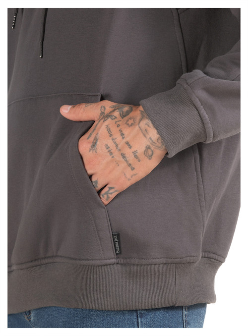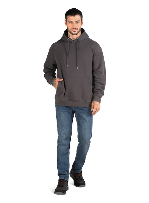 Polerón de hombre en color gris diseñado para brindar comodidad y abrigo en un estilo casual y moderno. Confeccionado en 85% algodón y 15% poliéster, ofrece un tejido grueso y suave que proporciona calidez ideal para el uso diario. Su diseño incluye gorro ajustable con cordón que añade protección en días fríos y un bolsillo frontal tipo canguro perfecto para mantener las manos abrigadas o guardar pequeños objetos. Los puños y pretina elásticos mejoran el ajuste y la comodidad, creando una prenda versátil que se adapta fácilmente a looks urbanos y relajados.