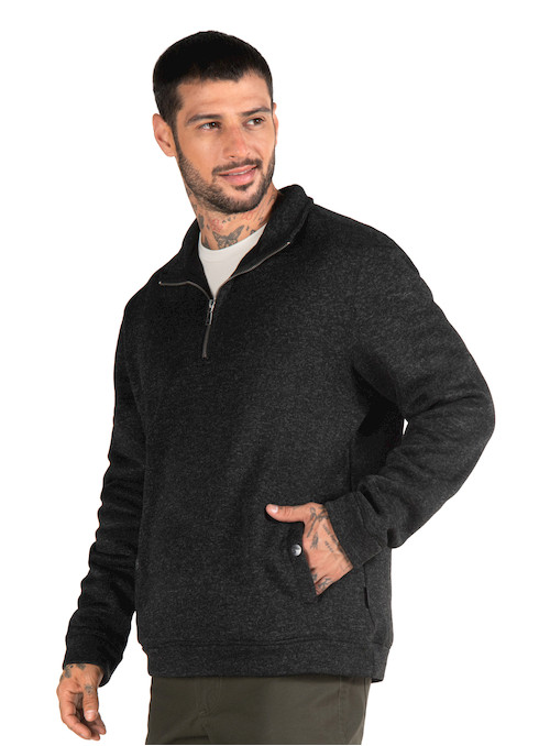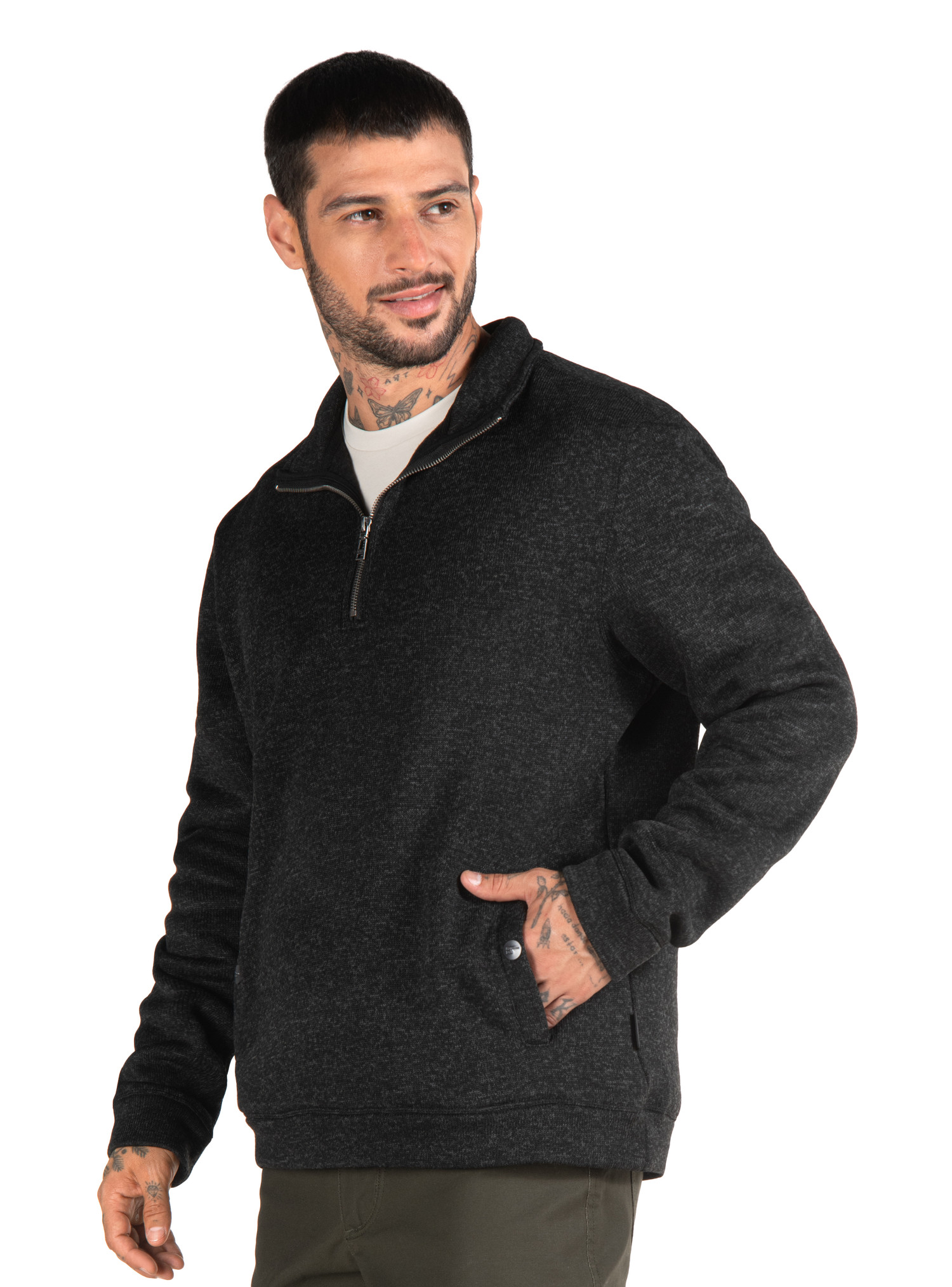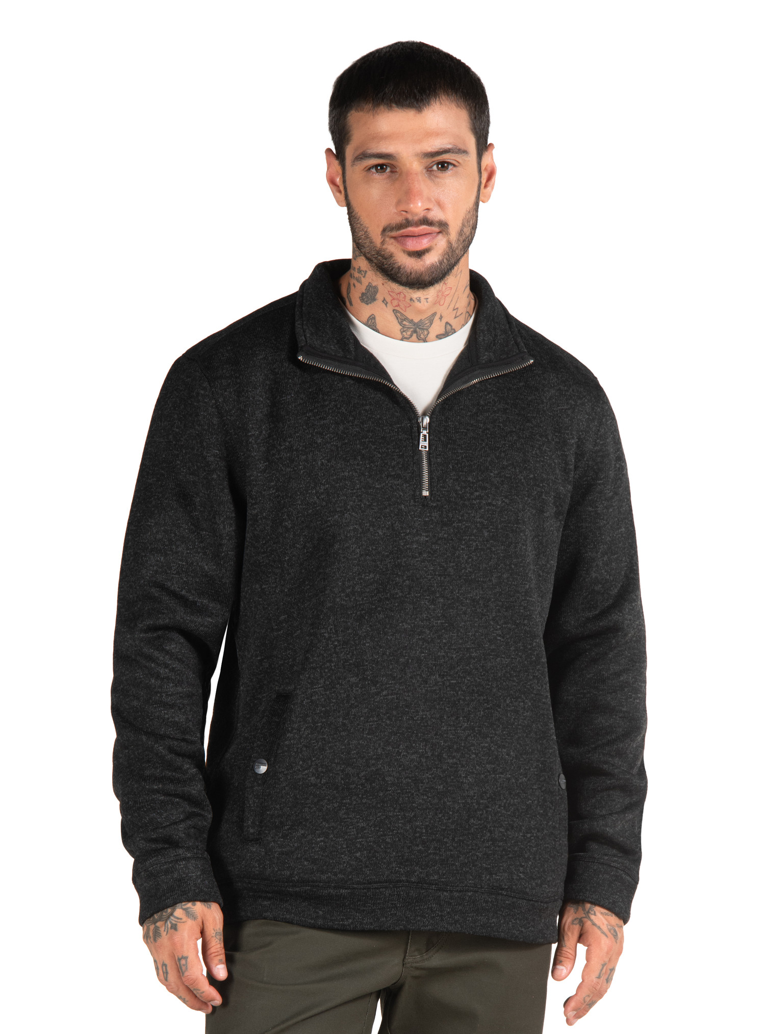 Sumérgete en la esencia de la libertad con el polerón de Panama Jack, una pieza que combina un diseño rústico y refinado. Su tejido de punto denso y compacto ofrece la calidez necesaria para los días más fríos, mientras que el cuello alto con cierre de media cremallera permite ajustar la ventilación a tu gusto. El negro azabache, elegante y versátil, se adapta a cualquier ocasión, ya sea un paseo por la ciudad o una escapada al aire libre. Con puños y bajo acanalados que mantienen la forma, este polerón es el aliado perfecto para quienes buscan confort sin sacrificar estilo. Combínalo con unos jeans y botas robustas para un look auténtico o con pantalones chinos para un toque más formal.