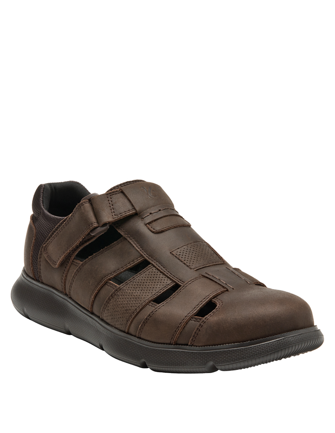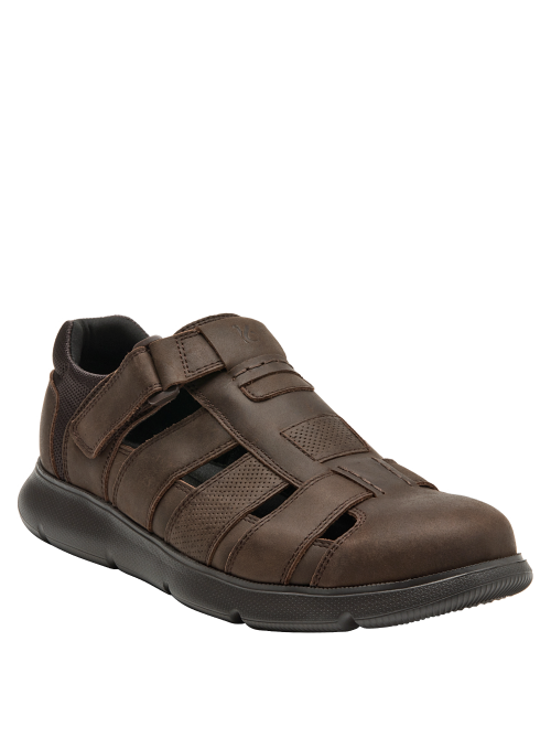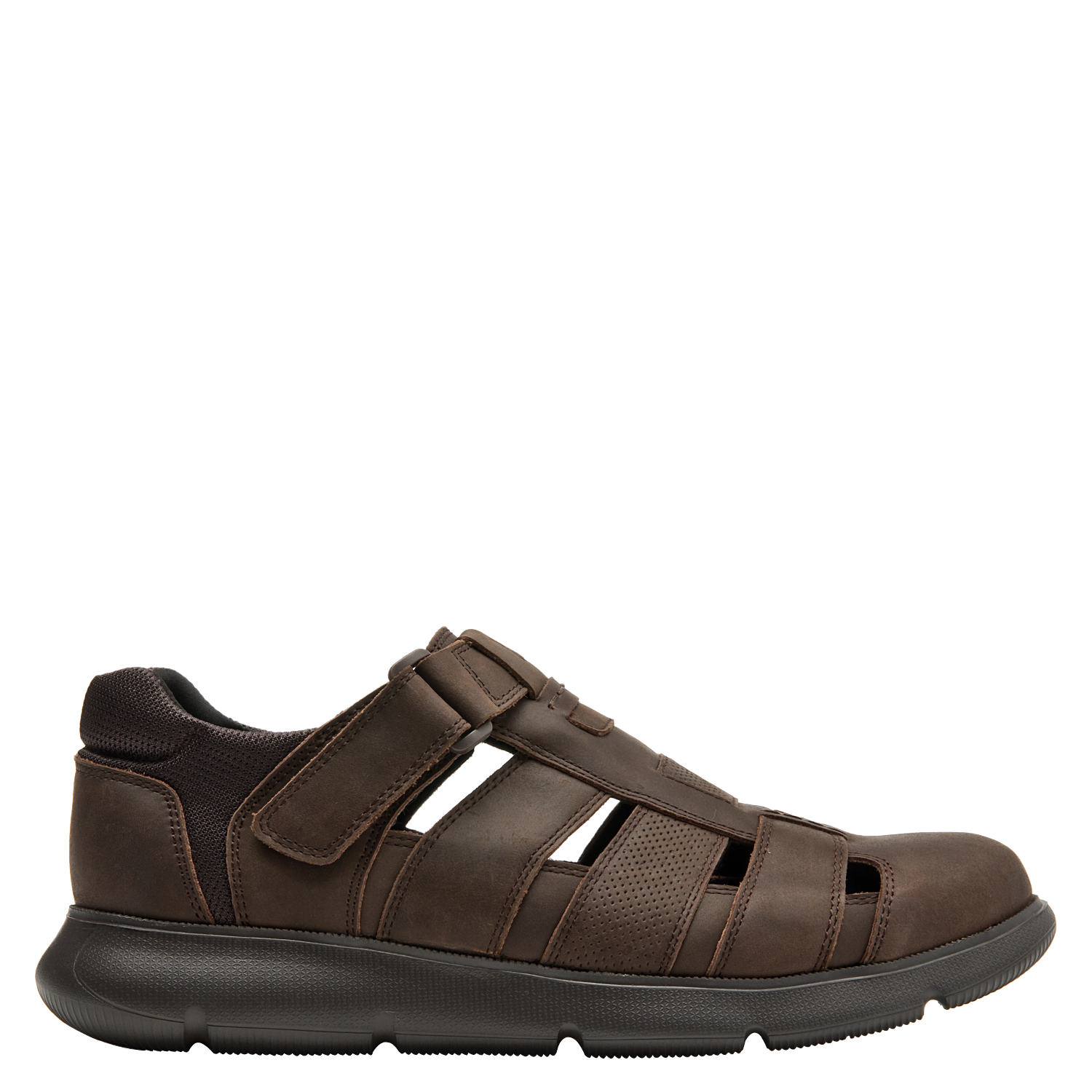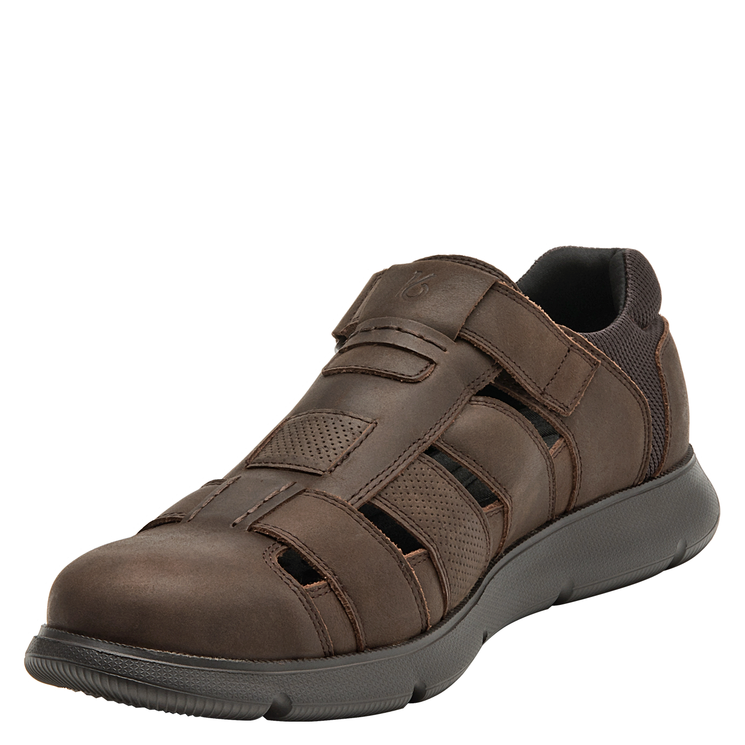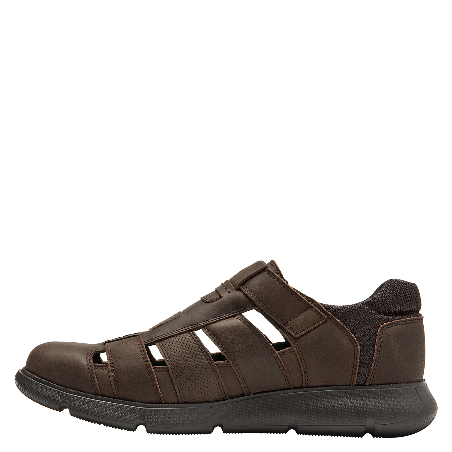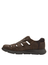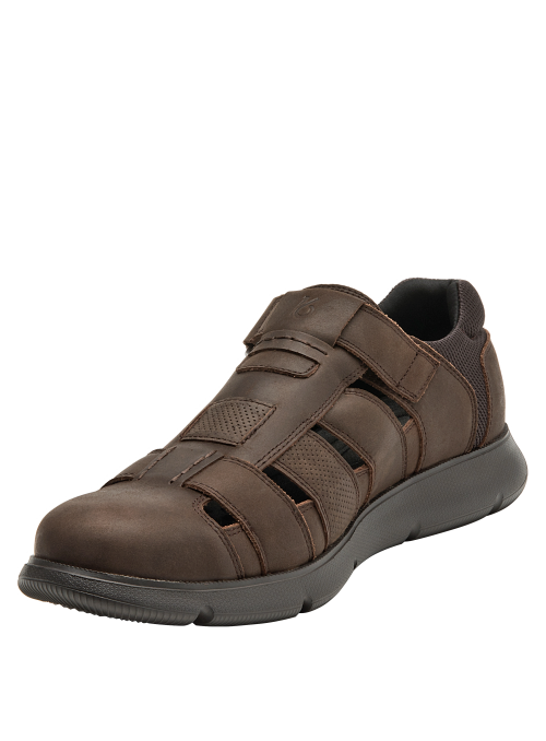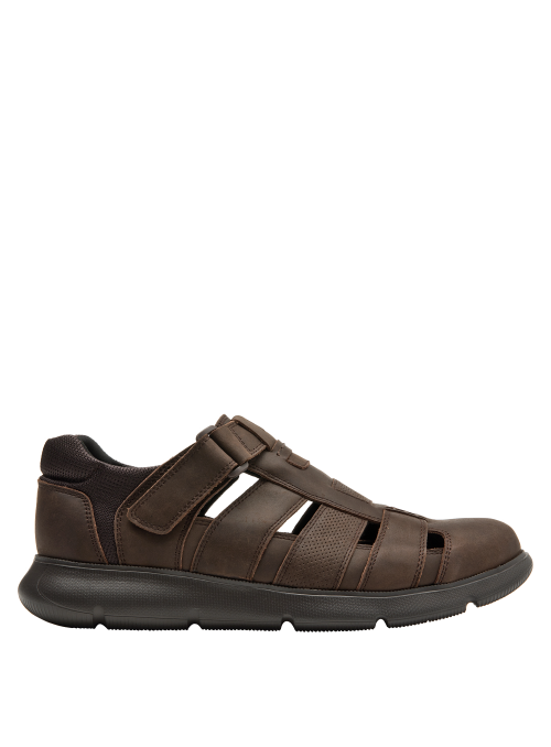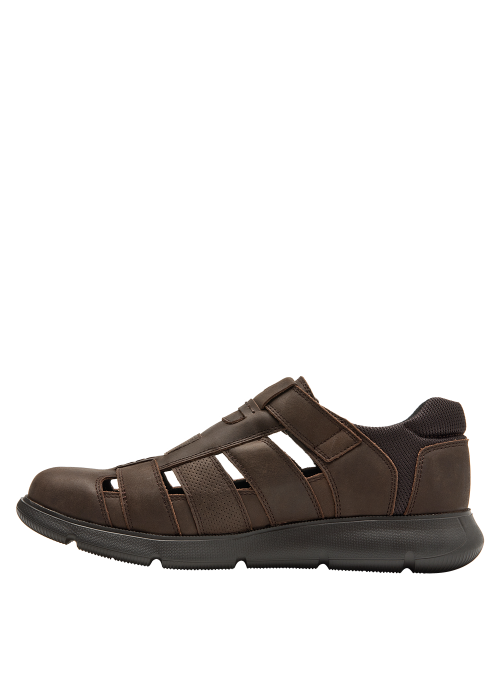 Descubre la elegancia y funcionalidad de La Sandalia de hombre de 16 HRS. Con un diseño clásico de estructura cerrada, múltiples correas entrelazadas y un exterior en cuero café oscuro, esta sandalia ofrece una apariencia robusta y duradera. Su suela ergonómica y ligera garantiza comodidad diaria.