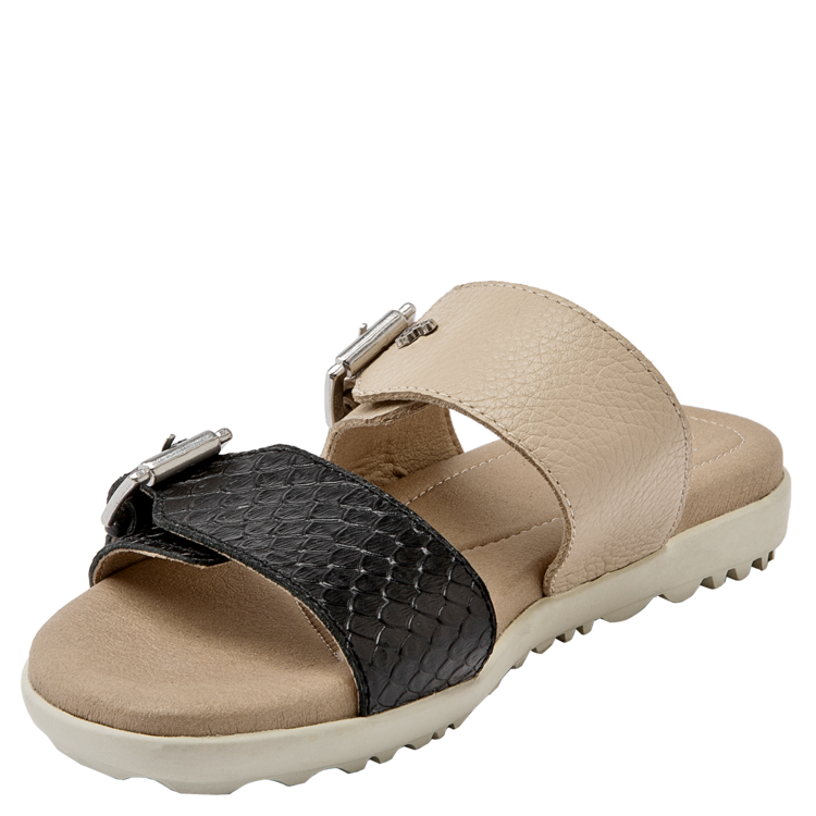 Lo que hace especial a esta sandalia es su diseño y los excelentes materiales empleados, que son tanto resistentes como ligeros. En el exterior, está elaborada de: 100%cuero, de calidad premium, mientras que en su interior cuenta con un forro de poliuretano, que añade una suavidad adicional. Esta suavidad, combinada con una plantilla cómoda, proporciona una experiencia de uso sumamente confortable. El diseño se completa con un taco plano de 2.5 cm lo suficientemente alto para estilizar tu figura sin sacrificar comodidad. La punta abierta brinda el equilibrio perfecto entre estilo y practicidad.En nuestro catálogo, podrás encontrar más opciones de sandalias de mujer y chalas. Elige entre las clásicas sandalias negras y sandalias de cuero, o atrévete con opciones más arriesgadas, como las llamativas pero cómodas sandalias con plataforma.