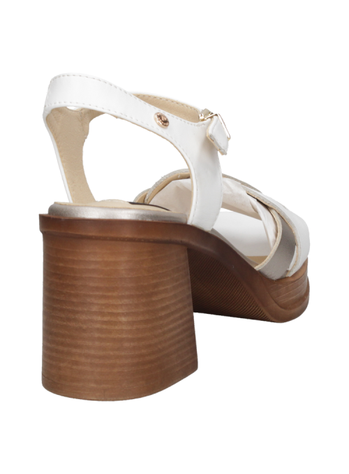 La sandalia de mujer de Pollini K221 tiene un diseño cómodo y moderno que te dará la frescura que necesitas en los días de verano. Su estilo es único y femenino te hará destacar en cualquier ocasión. El material exterior utilizado para su elaboración es 100% cuero, lo que garantizará durabilidad y un acabado premium. Tiene un cómodo y versátil taco bloque de 8 cm, que no solo aumentará tu altura, sino que también estilizará tu figura. Su punta es abierta y su suave forro es poliuretano.