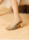 Sandalia de taco bloque para mujer en color oro, con punta cuadrada y altura de 5 cm. Su capellada de material sintético y forro PU aportan un look pulcro con acabado dorado que destaca en diferentes ocasiones. El taco ancho favorece la estabilidad y el diseño minimalista la convierte en una opción versátil para elevar tus tenidas de día o de noche.