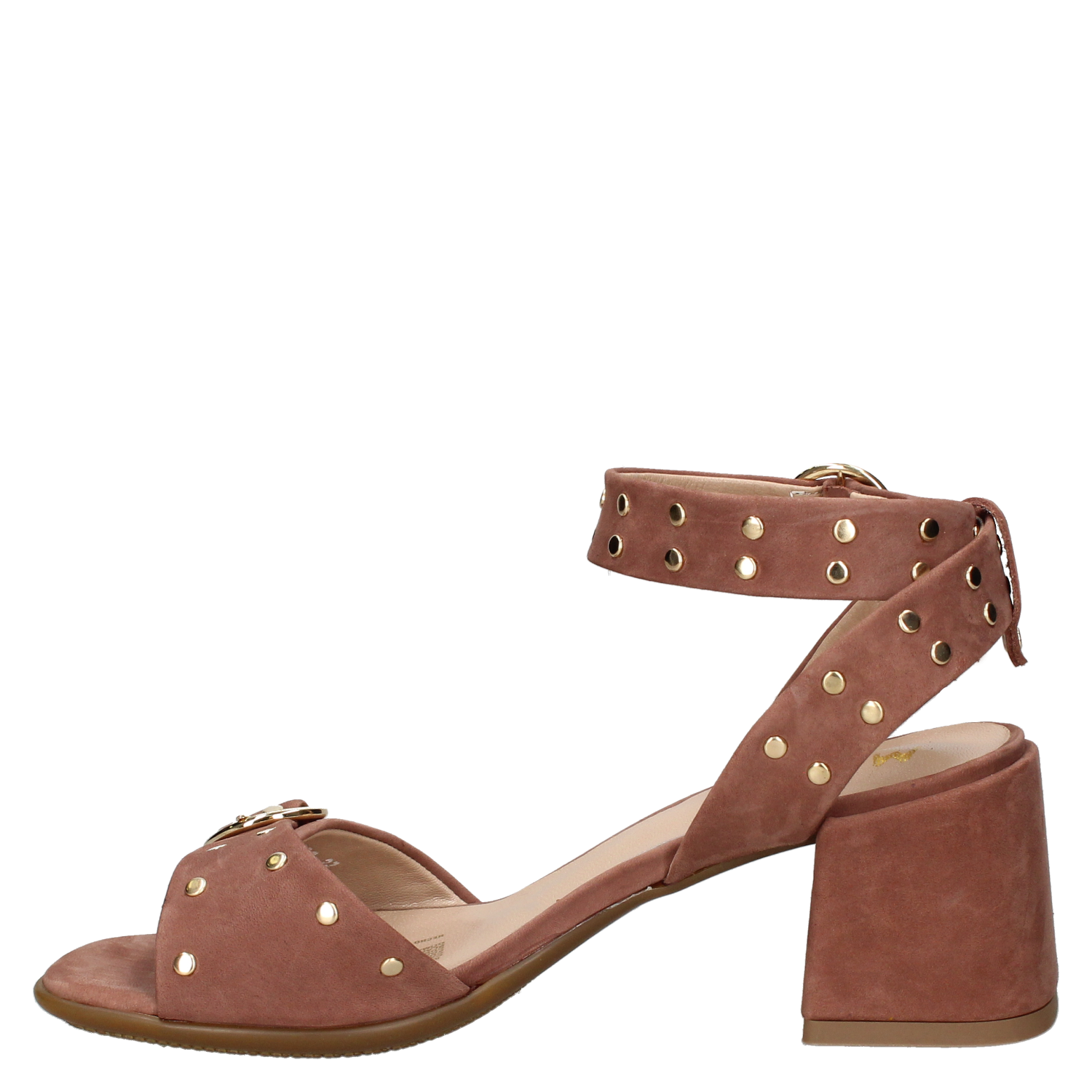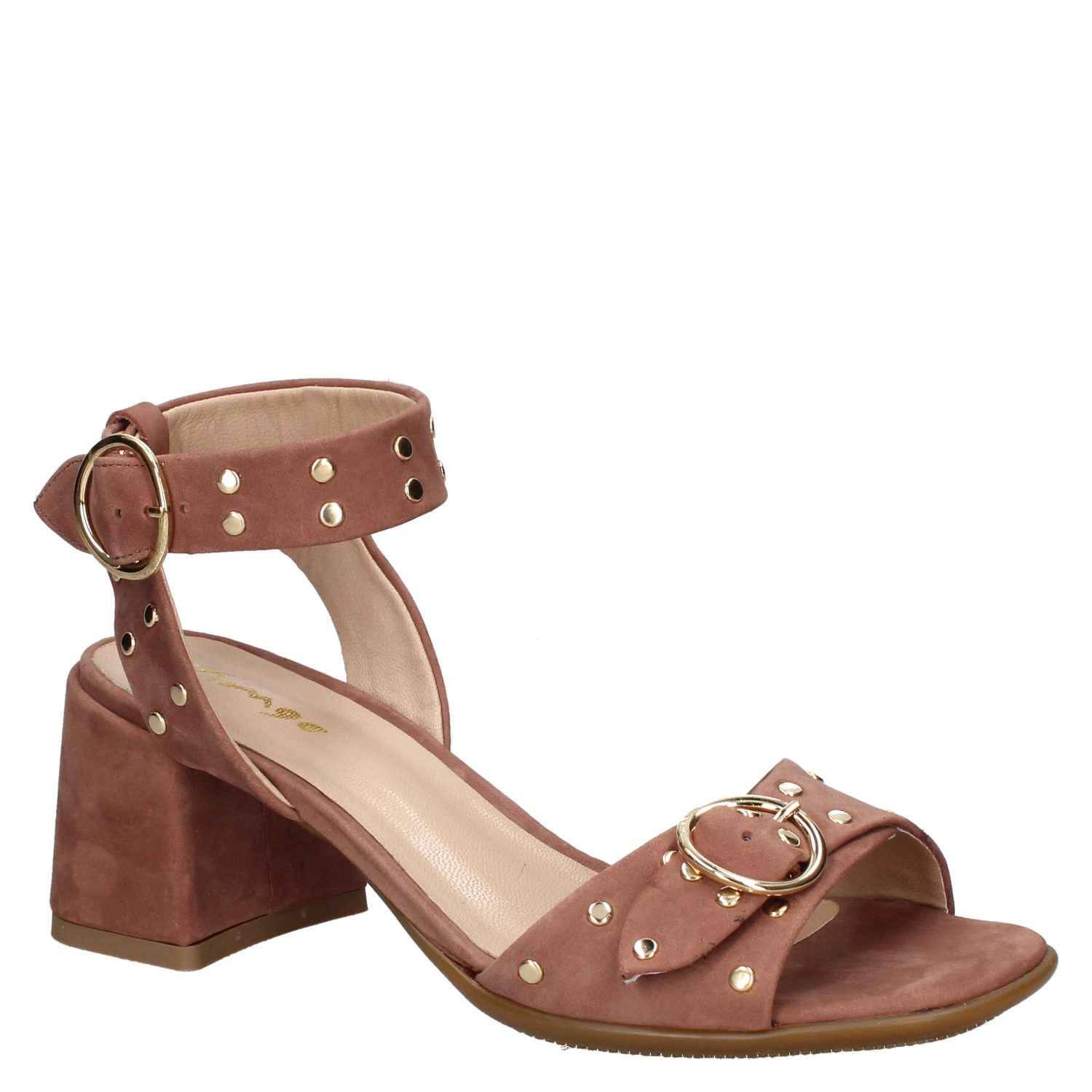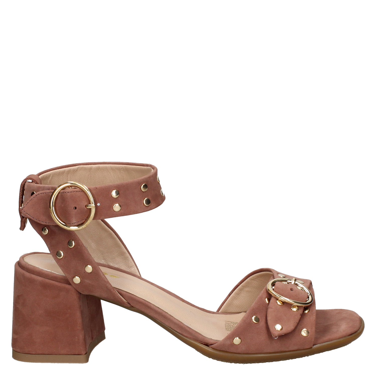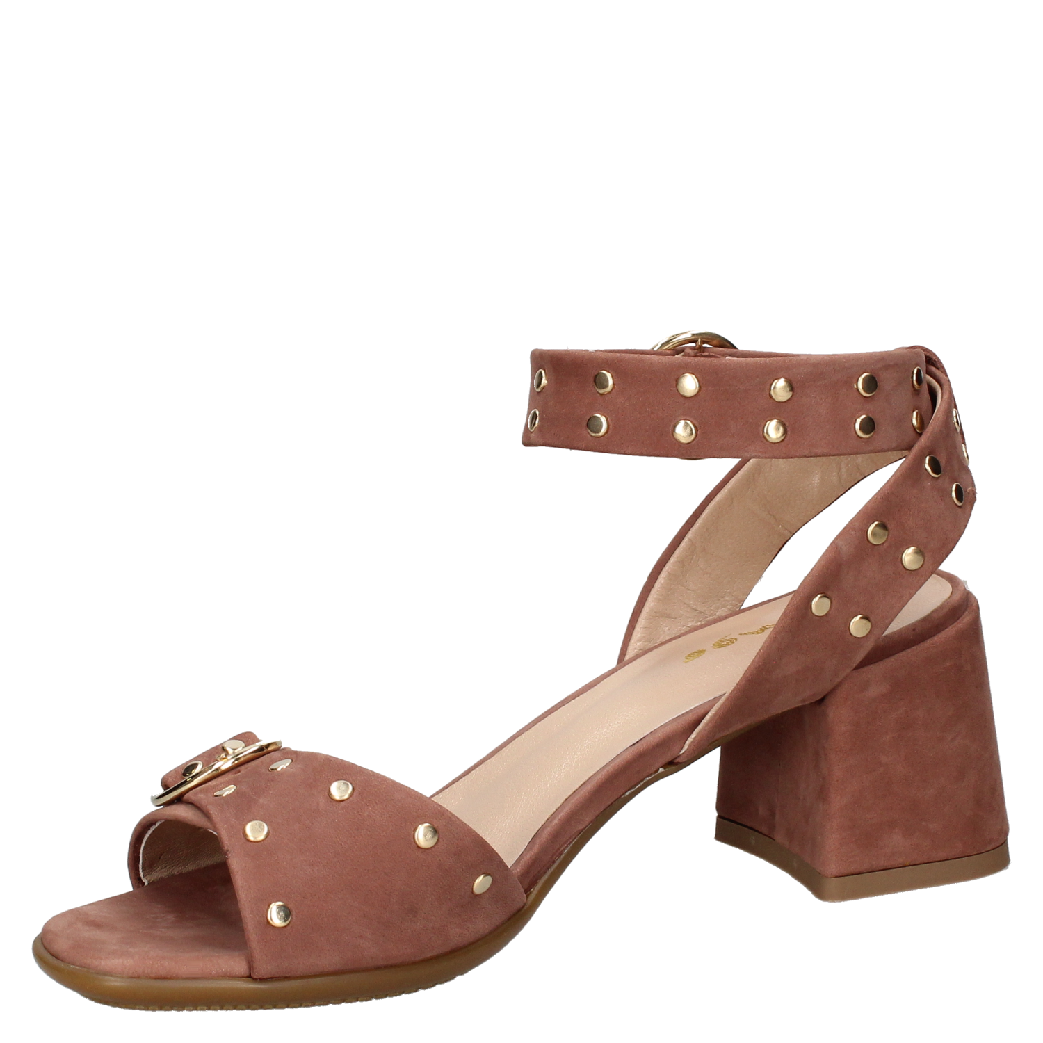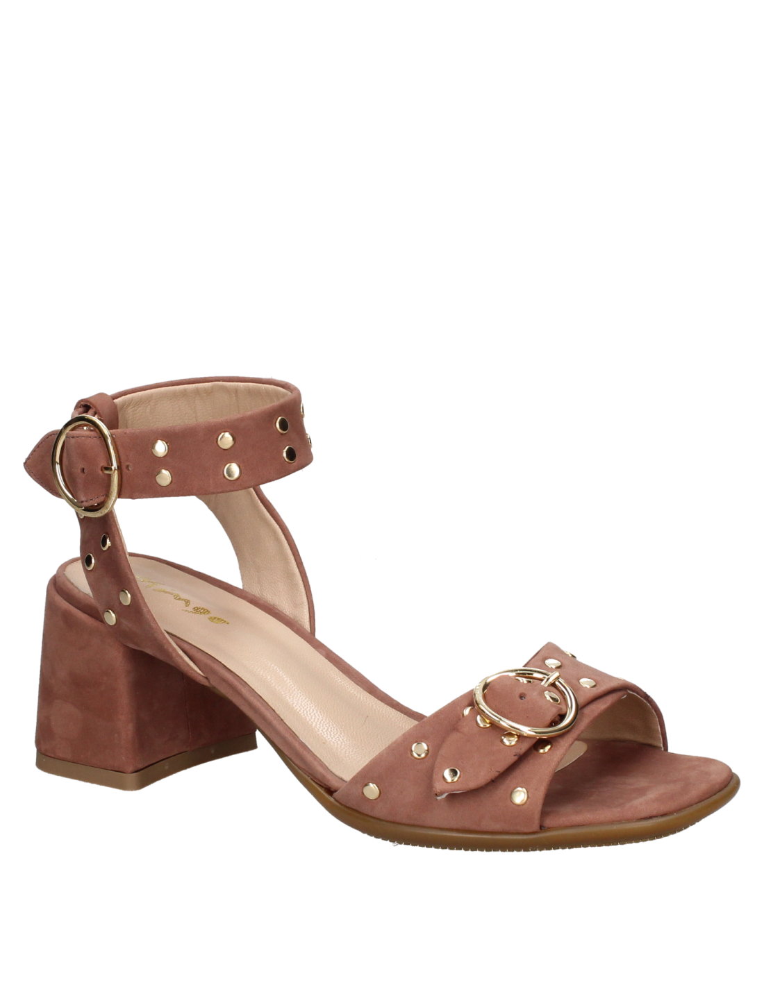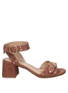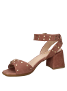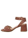 Sandalia de cuero para mujer en color café, de diseño atemporal con punta abierta y taco bloque de 5 cm que aporta estabilidad y altura moderada. La capellada y el forro en cuero entregan una sensación agradable al contacto, mientras su silueta limpia complementa looks desde lo casual a lo semi formal.