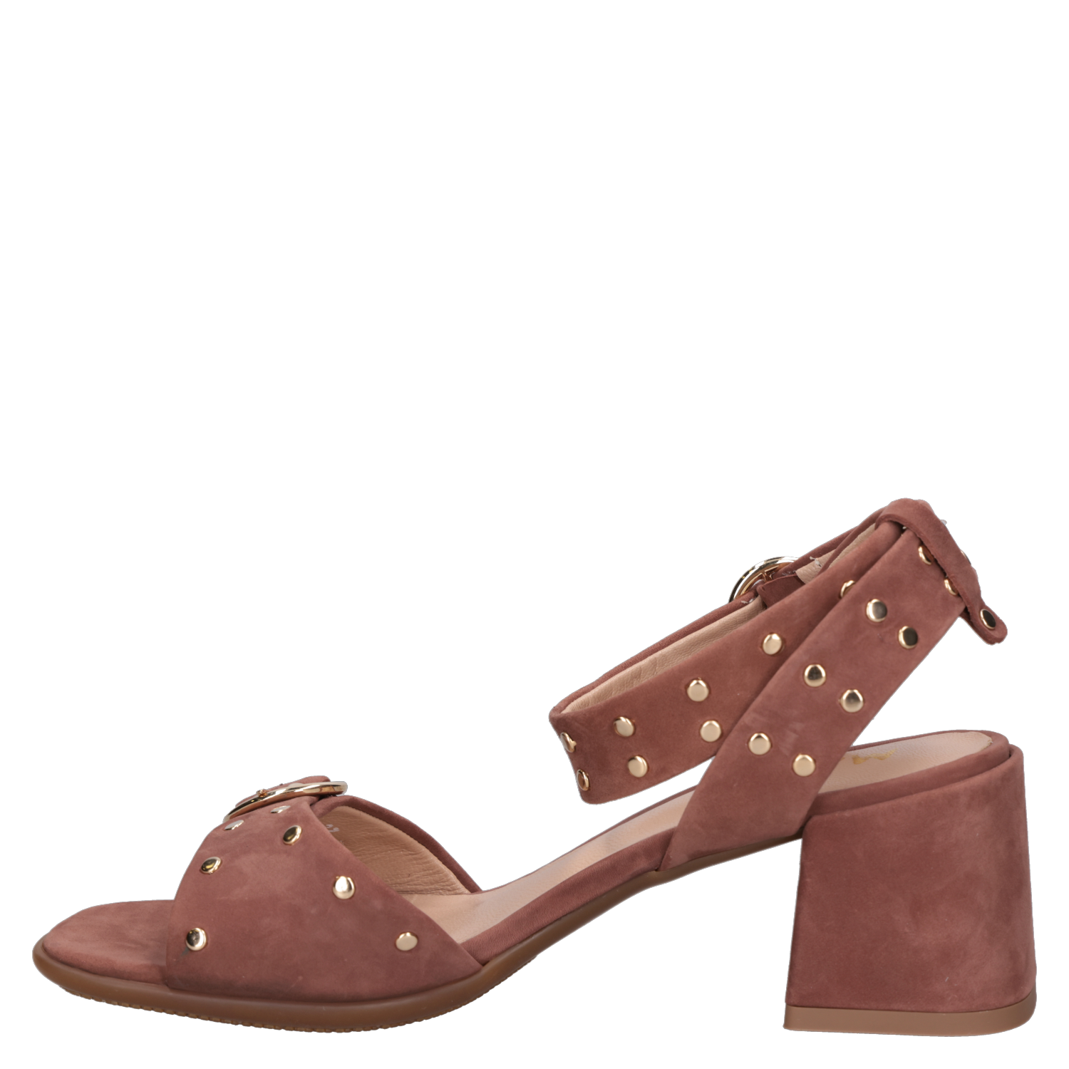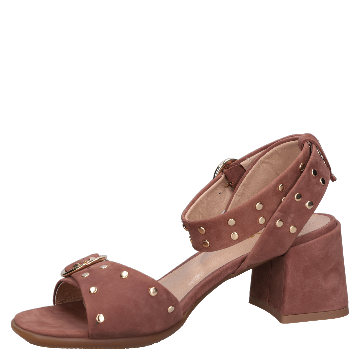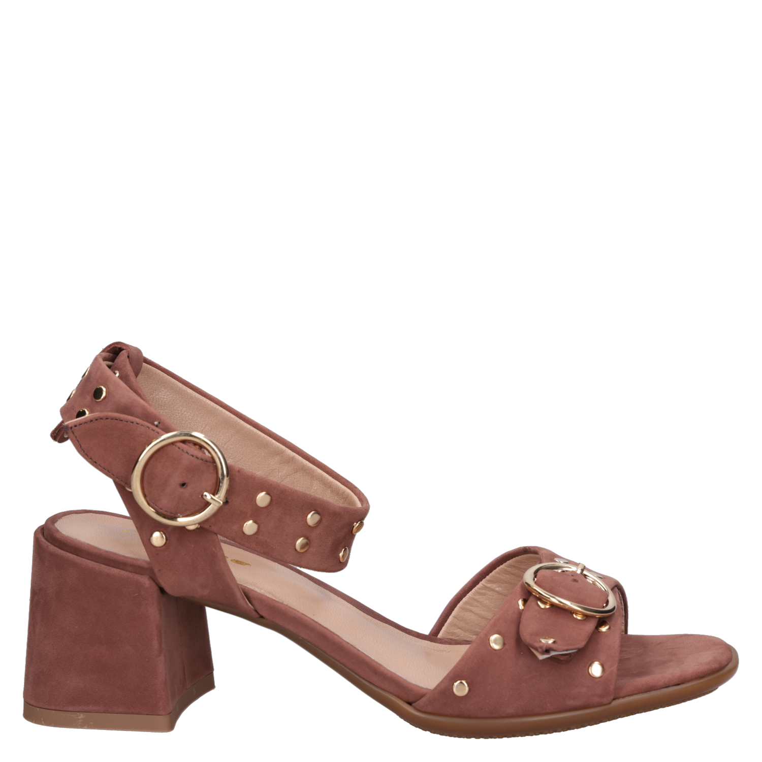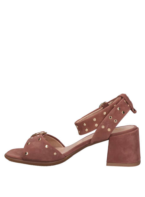 Sandalia de cuero para mujer en color café, de diseño atemporal con punta abierta y taco bloque de 5 cm que aporta estabilidad y altura moderada. La capellada y el forro en cuero entregan una sensación agradable al contacto, mientras su silueta limpia complementa looks desde lo casual a lo semi formal.