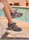 La Sandalia de niña de Panama Jack destaca por su diseño moderno y funcional, perfecta para aventuras al aire libre. Confeccionada en sintético, combina un gris oscuro con detalles en rosa pálido, y su suela gruesa garantiza comodidad y tracción. Los cordones elásticos ajustables hacen que sea fácil de usar.