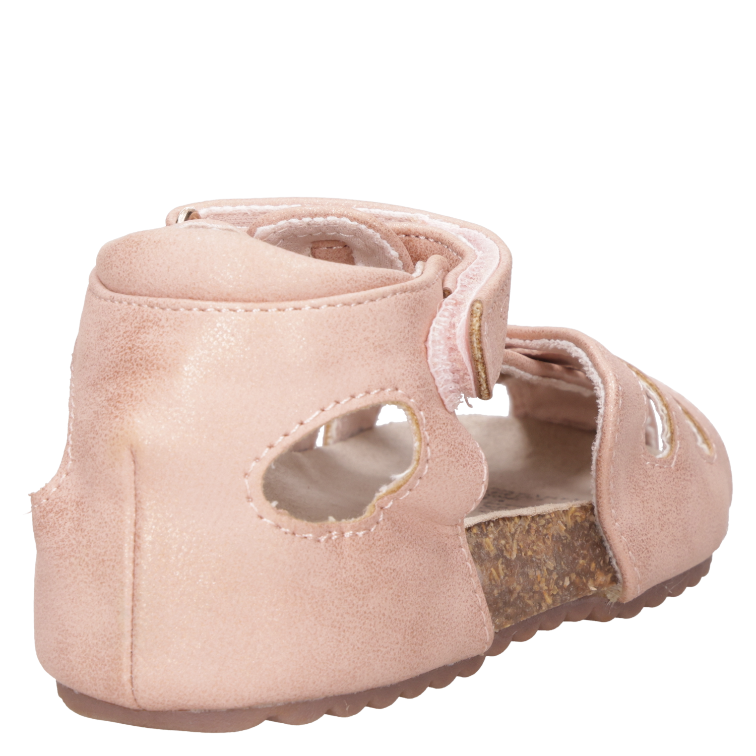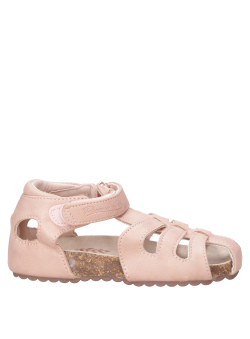 Sandalia para niña de espíritu outdoor, en un tono rosado. Capellada textil y forro sintético que se sienten suaves y acompañan el día a día, con planta plana y punta abierta para moverse cómoda entre la ciudad y la plaza. Construcción liviana y simple, ideal para explorar sin complicaciones. Combínala con shorts livianos y polera para la tarde, o con un vestido veraniego y una chaqueta ligera cuando baje la temperatura.
