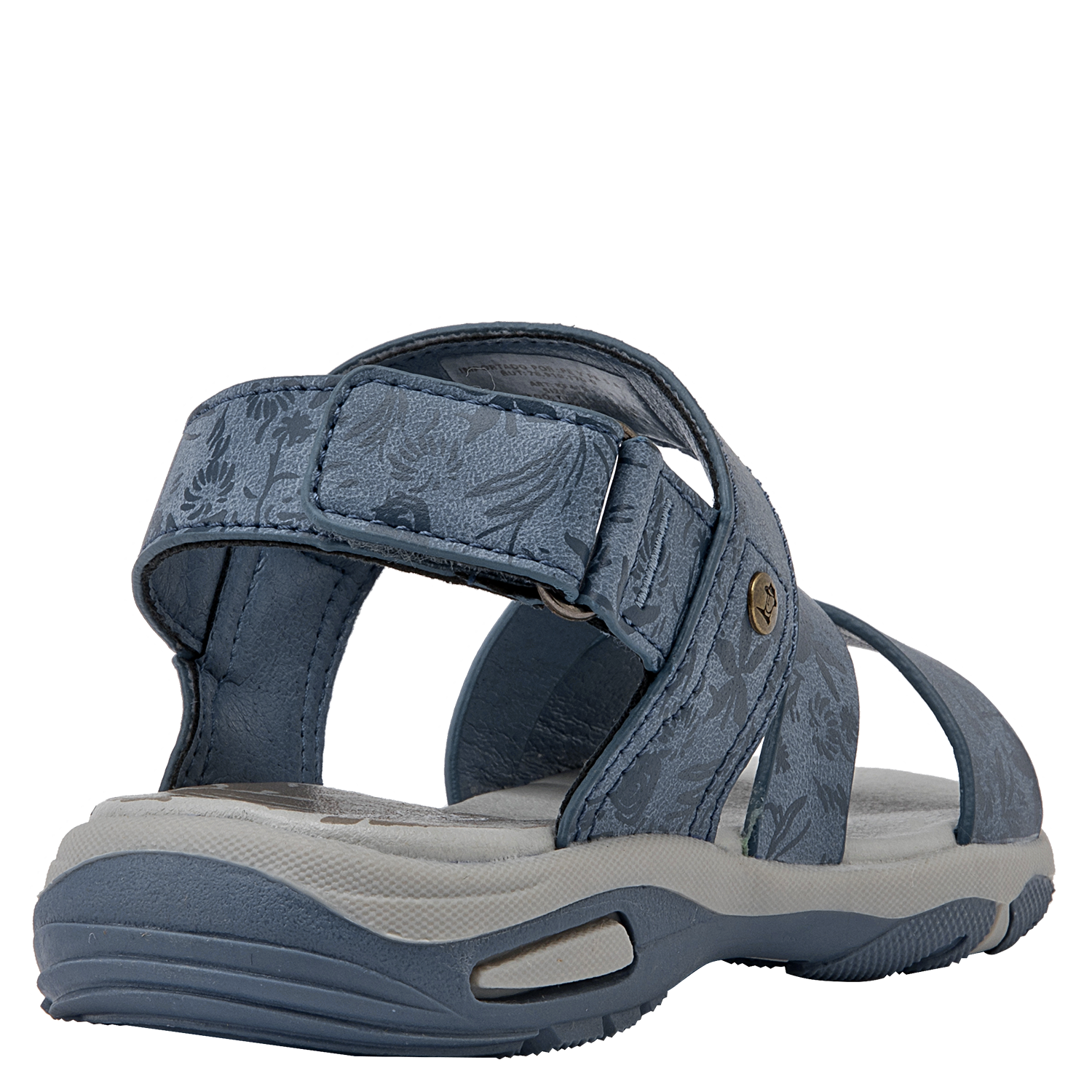 Sandalia casual para niña en color azul, de punta abierta y suela plana que invita a moverse con libertad. Construida en 100% material sintético con forro sintético, fácil de cuidar, con altura de 2,7 cm para un paso natural. Estilo relajado y urbano con espíritu outdoor, ideal para explorar la ciudad y la playa. Combínala con shorts livianos, polera de algodón, jardinera o un vestido fresco, y una chaqueta liviana para la tarde.