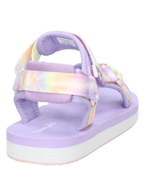 Sandalia urbana para niña en color lila, con diseño de punta abierta y perfil plano ideal para el día a día. Confeccionada en 100% textil y forro textil, entrega una pisada suave y fresca. Su suela plana acompaña cada paso con comodidad y un look relajado, perfecto para explorar la ciudad o la plaza. Combínala con shorts livianos, polera, jardinera de mezclilla o un vestido simple; suma una chaqueta ligera en días frescos.