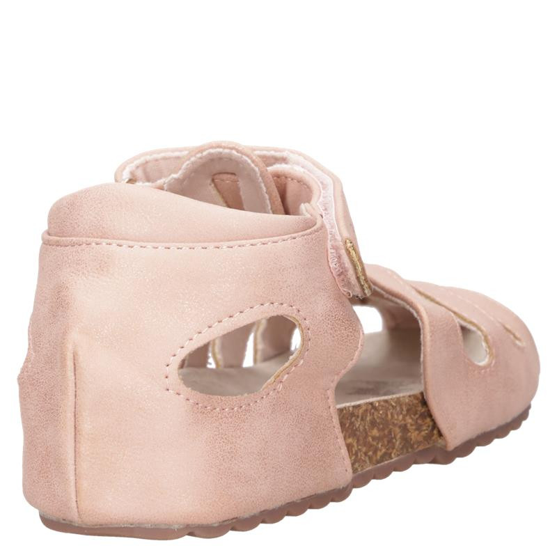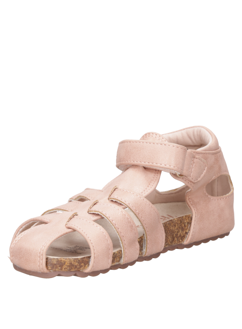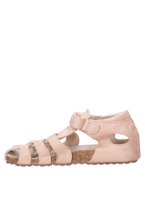 Sandalia infantil casual en rosado, ideal para un look alegre y urbano. Con material sintético y forro textil, suave al contacto, punta redonda y taco plano de 2 cm para acompañar sus paseos con ligereza. Diseño versátil que se mueve entre el juego y la aventura diaria con estilo sencillo y relajado. Combínala con shorts livianos, polera estampada, jardinera o un vestido veraniego.
