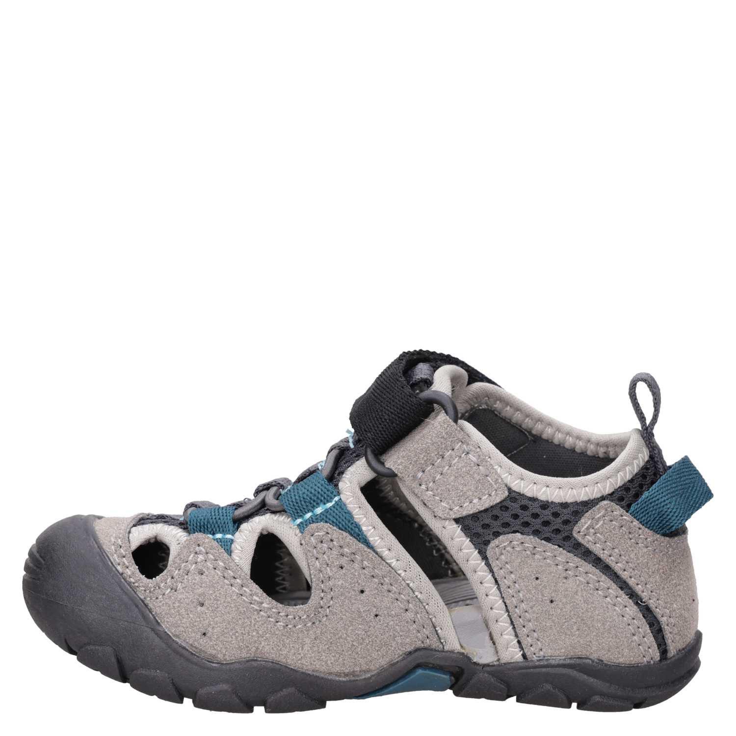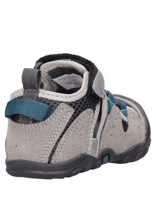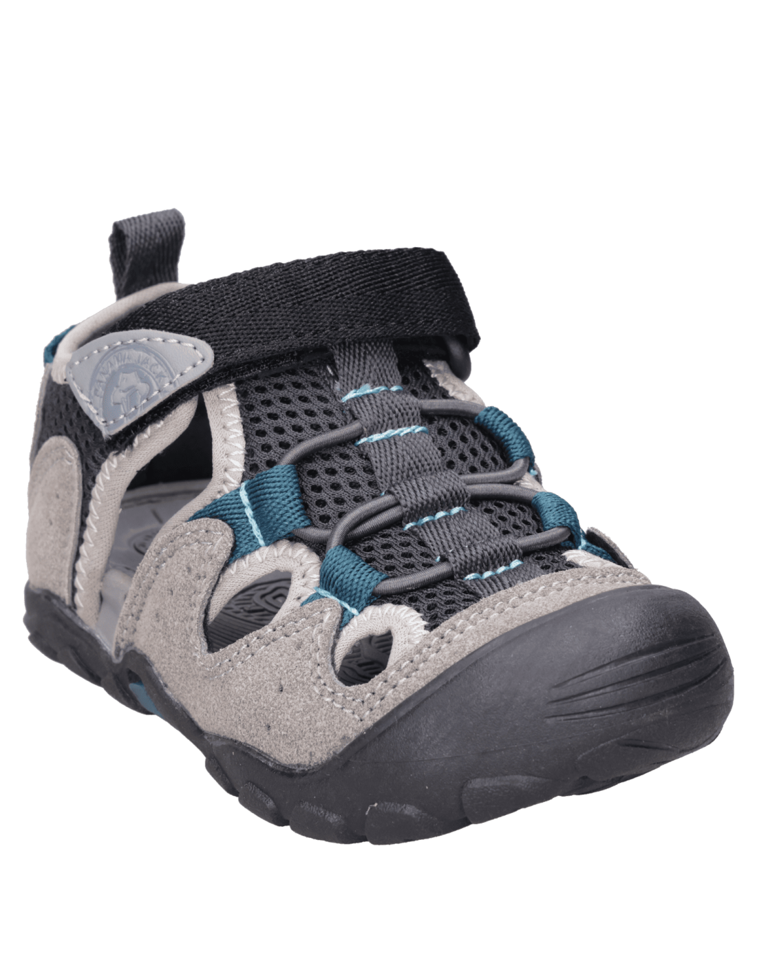 Sandalia infantil de diseño técnico y deportivo, orientada a un uso más exigente. Cuenta con estructura cerrada tipo trekking, con refuerzos frontales y laterales que entregan mayor protección. Su sistema de ajuste firme mantiene el pie estable, y la suela robusta ofrece excelente agarre. Ideal para niños que disfrutan explorar y moverse con libertad.