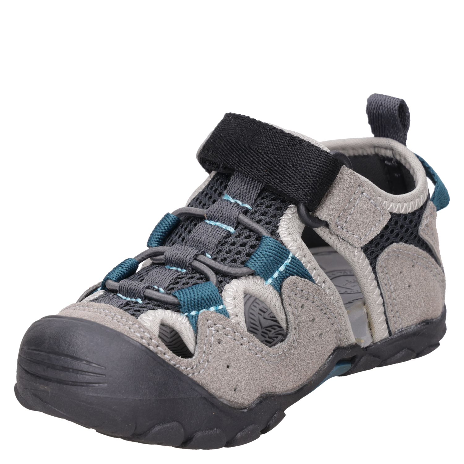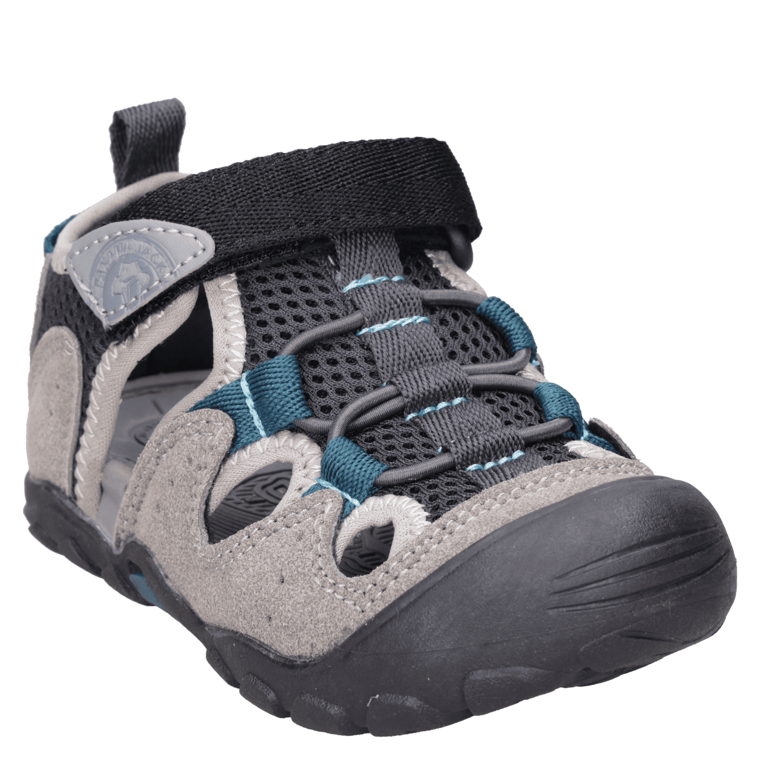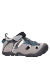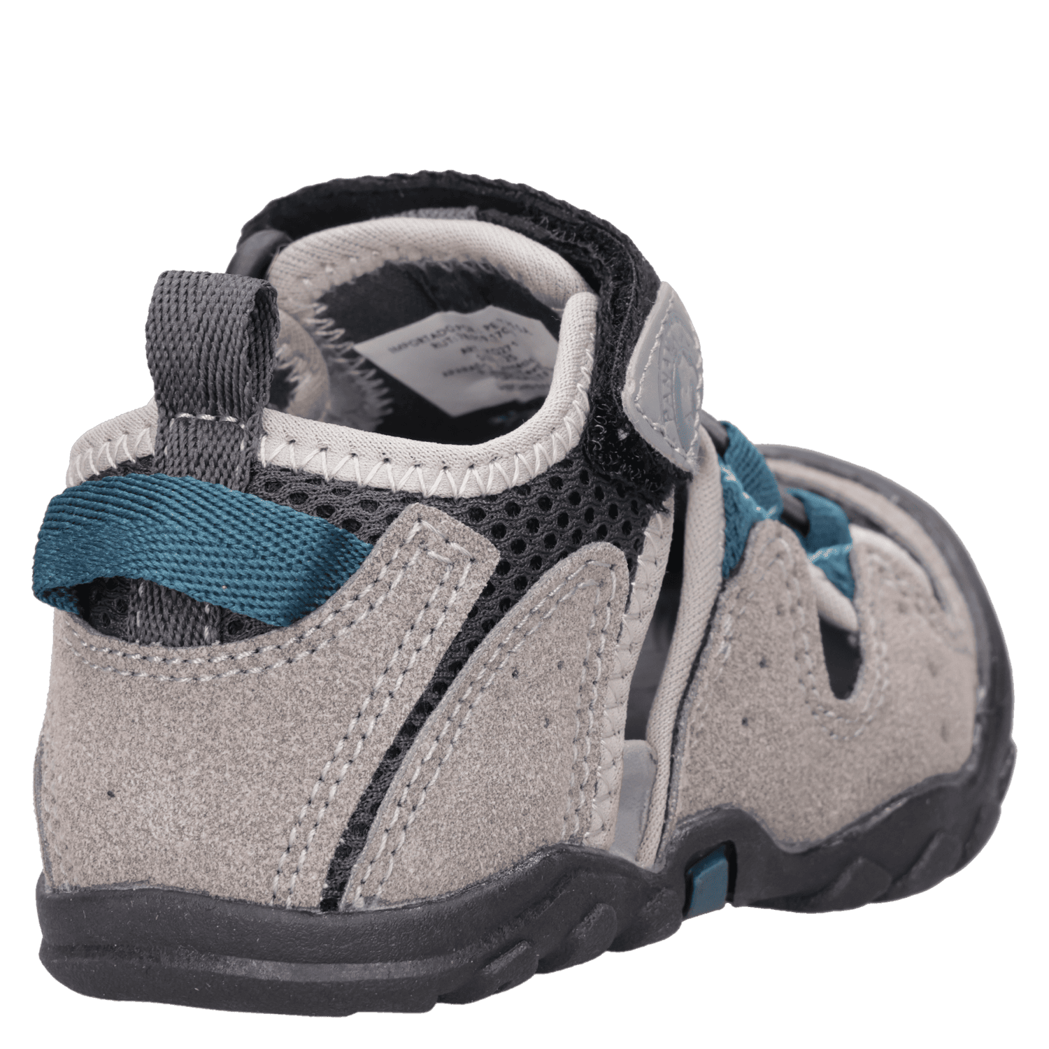 Sandalia infantil de diseño técnico y deportivo, orientada a un uso más exigente. Cuenta con estructura cerrada tipo trekking, con refuerzos frontales y laterales que entregan mayor protección. Su sistema de ajuste firme mantiene el pie estable, y la suela robusta ofrece excelente agarre. Ideal para niños que disfrutan explorar y moverse con libertad.
