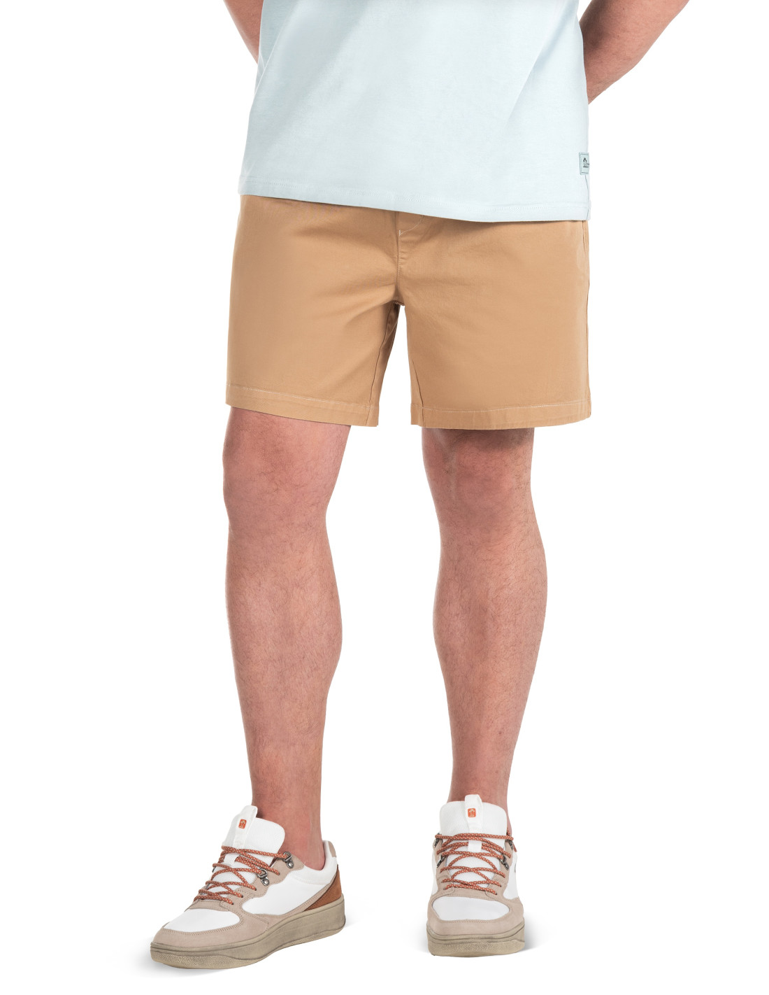 Short casual para hombre en color beige, confeccionado en 96% algodón y 4% spandex para una sensación suave con leve elasticidad. Presenta corte recto a la altura de la rodilla, pretina con trabillas para cinturón, cierre con botón y cremallera, bolsillos laterales oblicuos y bolsillos traseros. Terminación limpia y versátil para uso diario o fines de semana.