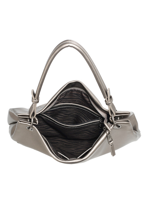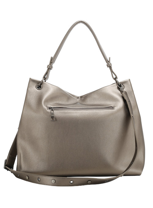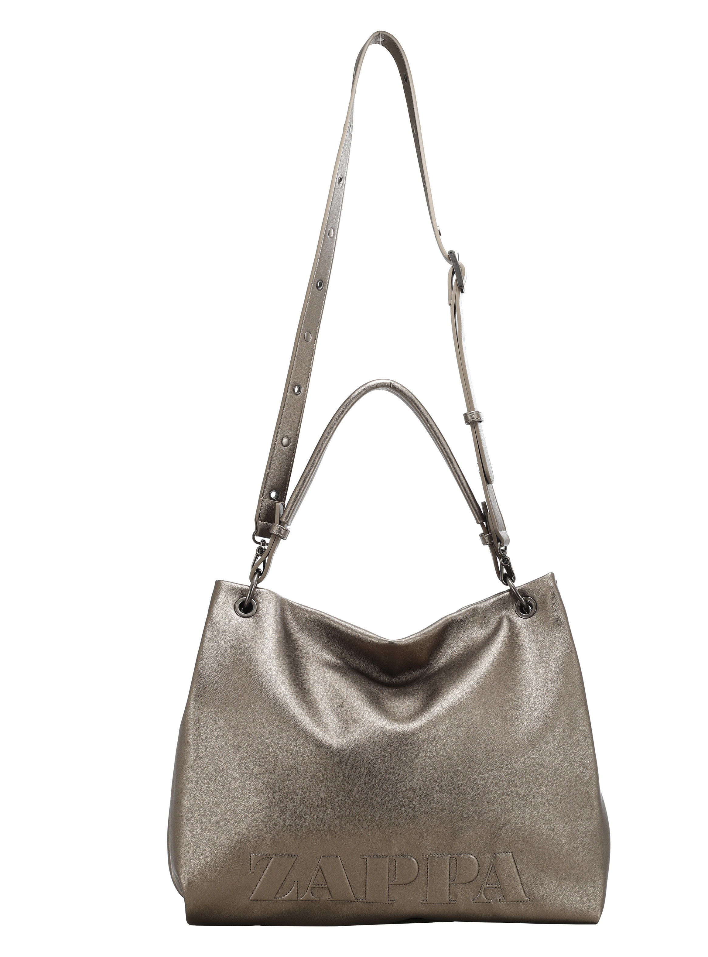 La Tote Bag Zappa en Negro Acero es el toque de audacia que tu look necesita. Con sus 36 cm de altura y 38 cm de ancho, combina la funcionalidad con un diseño contemporáneo. Su acabado brillante y suave destaca entre la multitud, mientras que las tachas y ojetillos metálicos le aportan personalidad. Con una correa extraíble y ajustable, y dos bolsillos, uno con cierre, es ideal para el trabajo o la universidad. El cierre metálico asegura que todo esté en su lugar. ¡Atrévete a ser única!