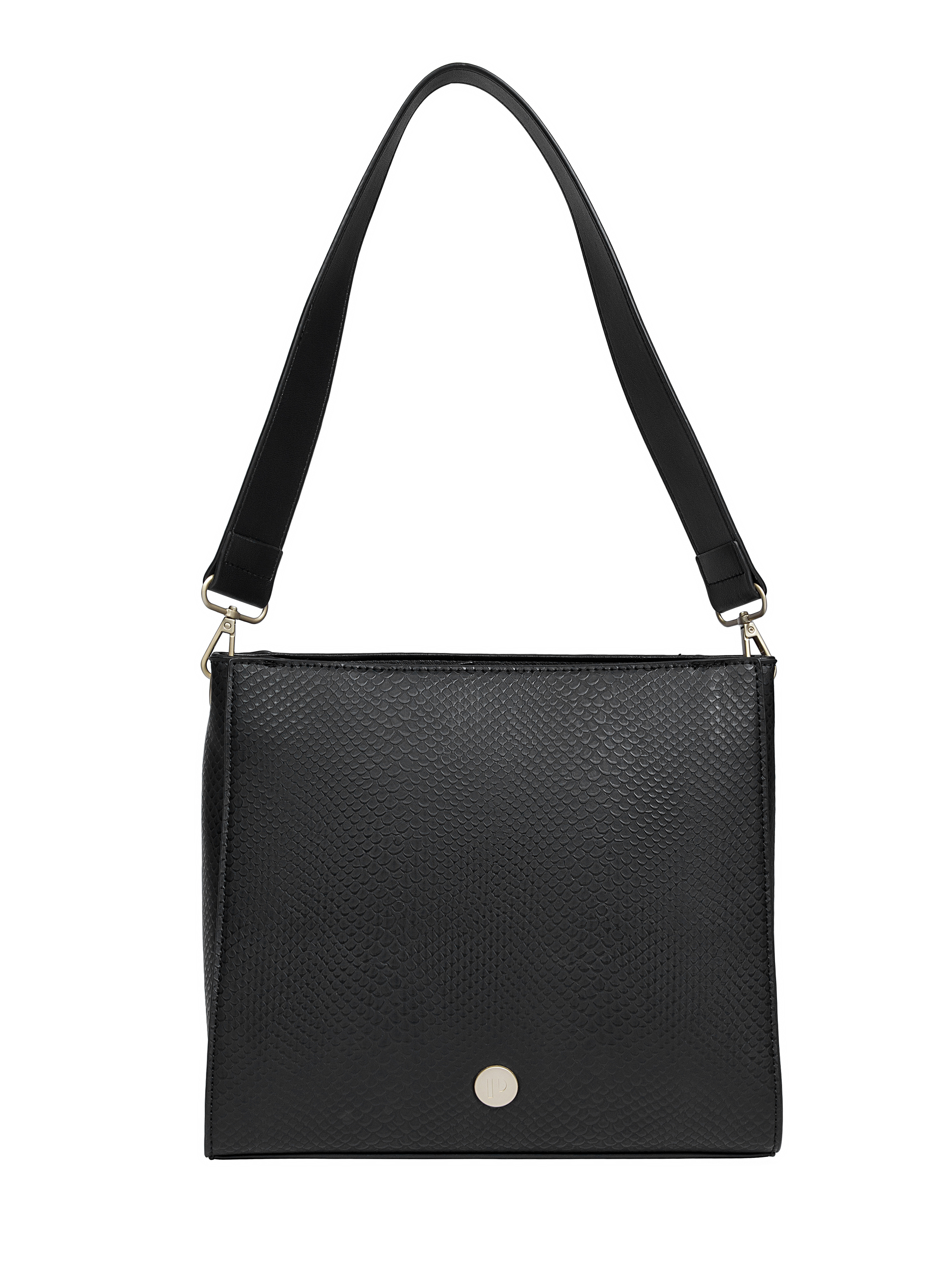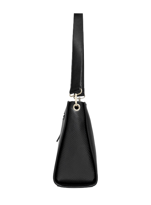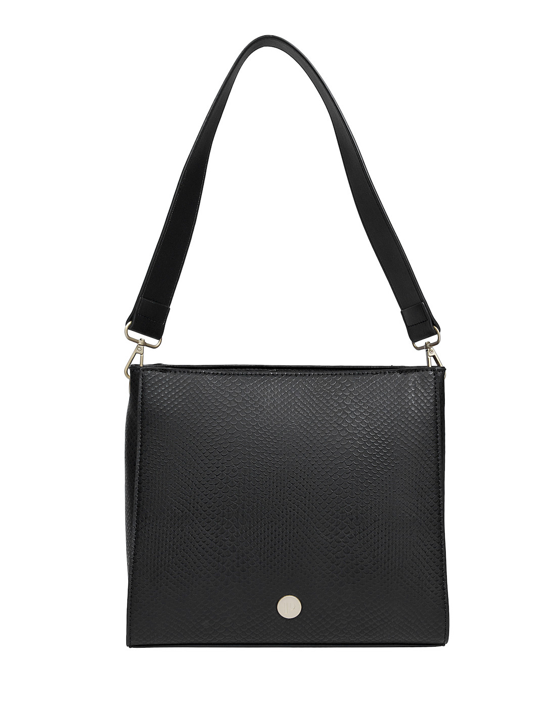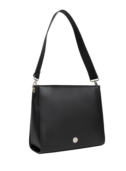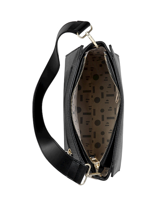 Este bolso negro de Pollini es el complemento perfecto para la mujer actual. Con medidas de 26 x 24 x 15 cm y un diseño elegante, su acabado texturizado aporta un toque sofisticado. Cuenta con tres bolsillos, uno con cierre metálico, ideal para llevar lo esencial de manera organizada. Su strap ajustable y extraíble te permite adaptarlo a cada ocasión, brillando en entornos laborales y académicos. Con su presencia cautivadora, te sentirás segura y lista para conquistar el día.