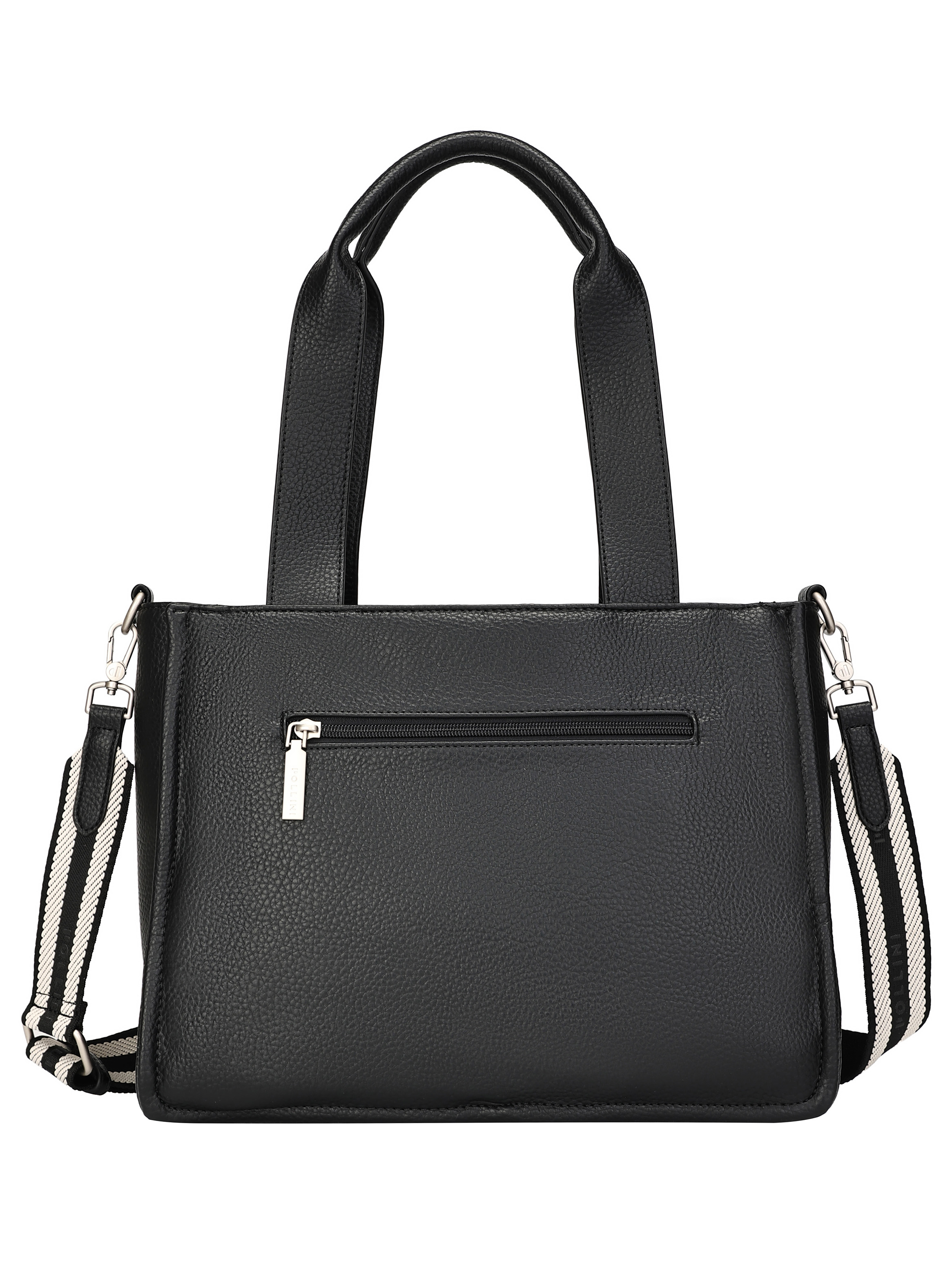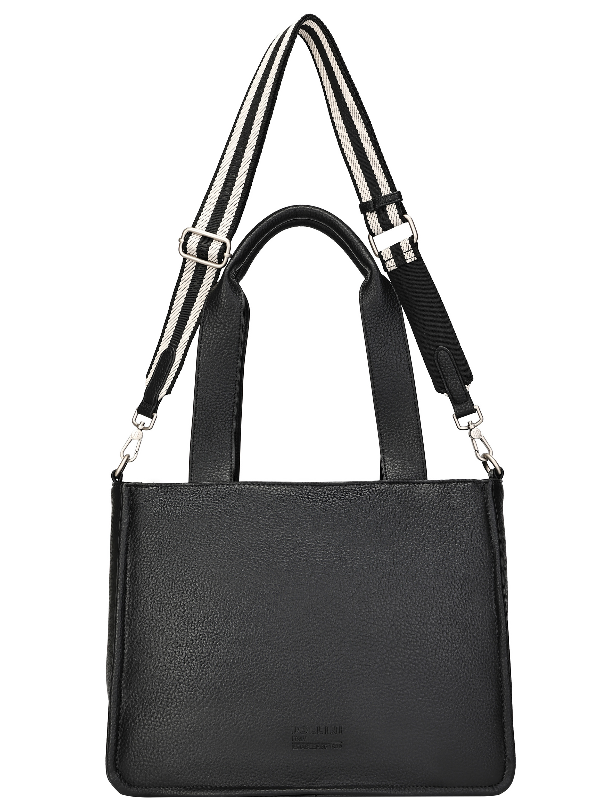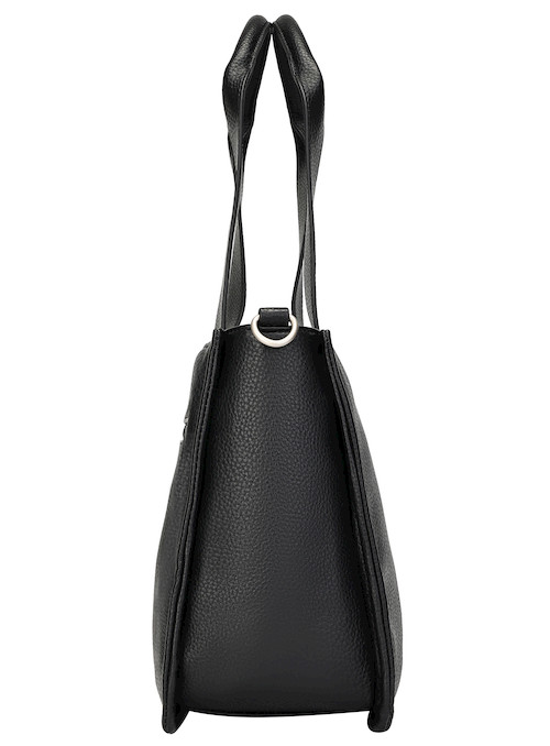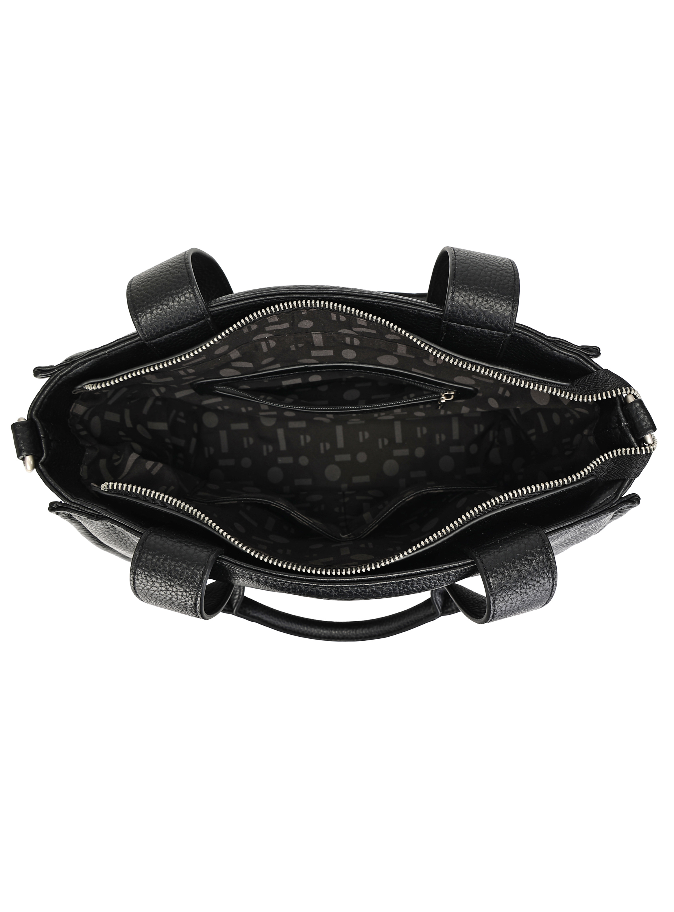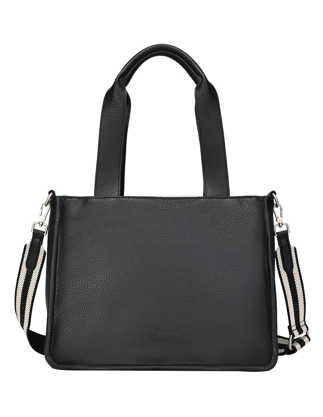 El bolso Pollini en elegante negro es el complemento ideal para la mujer moderna y activa. Con medidas de 33 cm x 13 cm x 16 cm, ofrece el espacio perfecto para tus esenciales diarios. Su diseño sofisticado incluye dos bolsillos, uno con cierre, y un cierre metálico robusto que asegura su contenido. Los tirantes ajustables con hebilla metálica permiten llevarlo como prefieras. Con texturas que capturan la luz, este bolso transforma cada outfit en una declaración de estilo. ¡Siente la reinvención de la moda!
