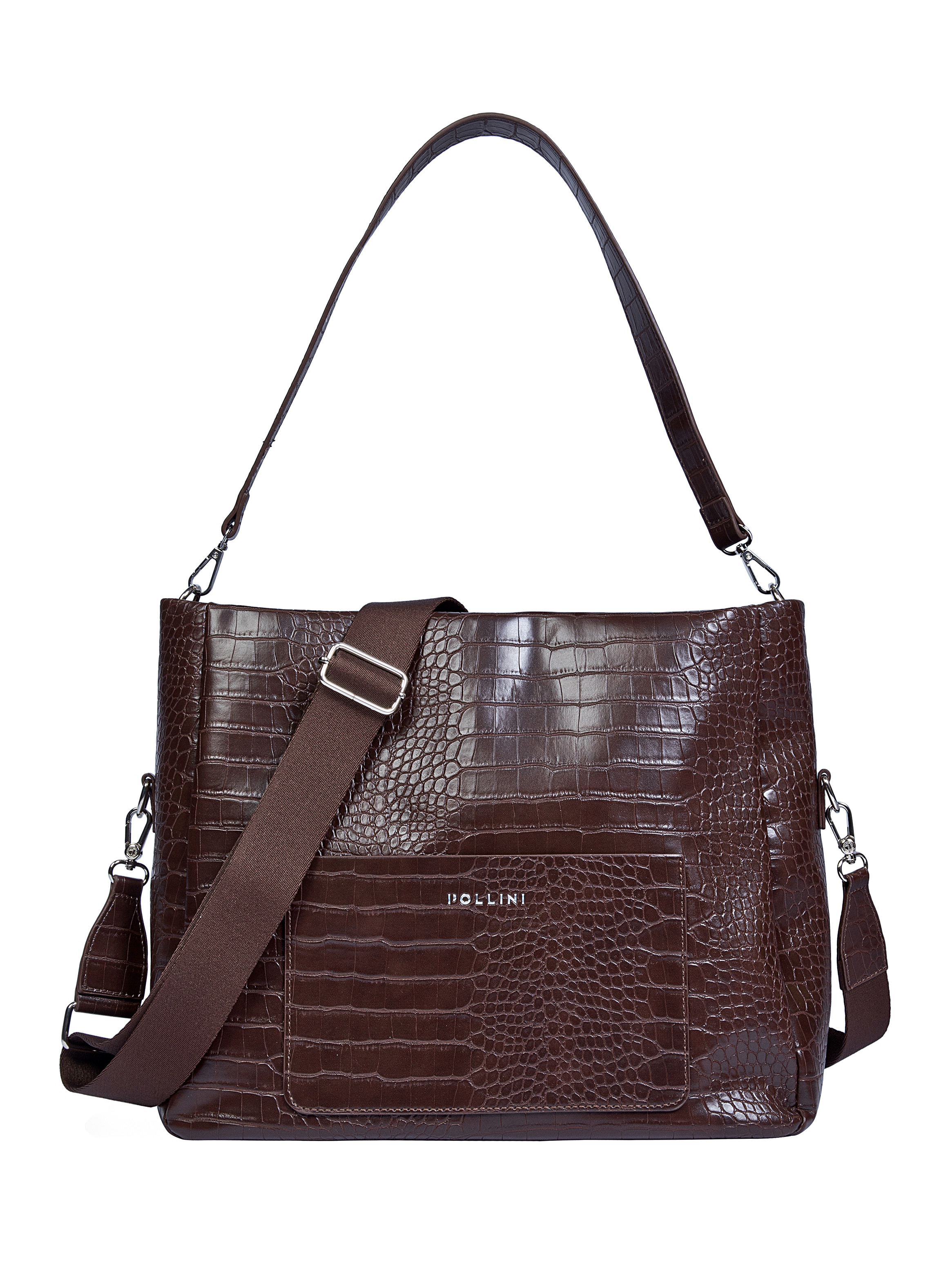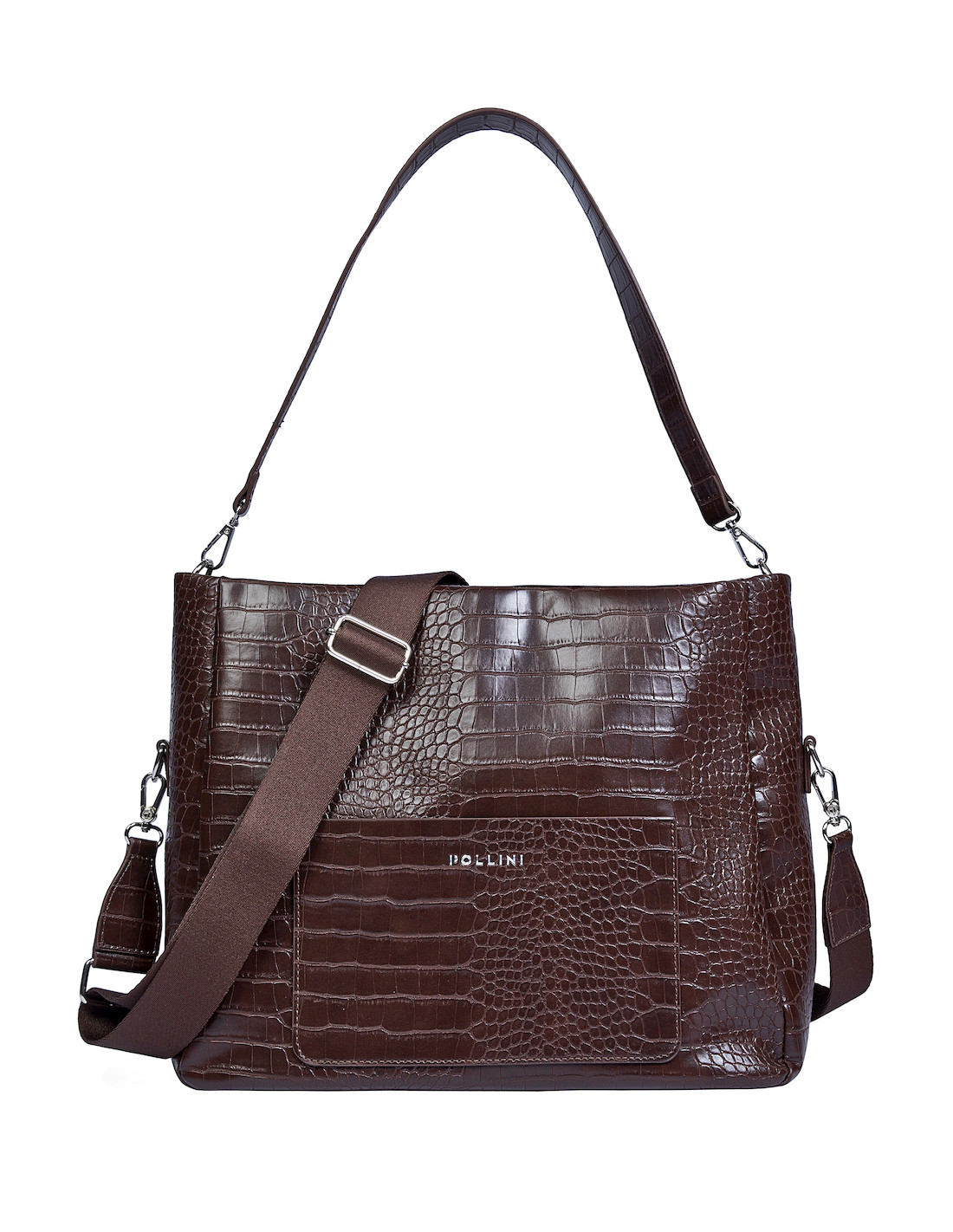 Sumérgete en el estilo contemporáneo con el bolso Pollini en un elegante tono café. Diseñado para la mujer multifacética, su textura graneada y su acabado brillante otorgan un aire de sofisticación. Con medidas de 29 cm x 38 cm x 15 cm, este bolso cuenta con una correa extraíble y ajustable, tres bolsillos estratégicos (uno con cierre) y un cierre metálico que combina funcionalidad y diseño. Perfecto para llevar lo esencial, ya sea en el trabajo o en un día de estudio.