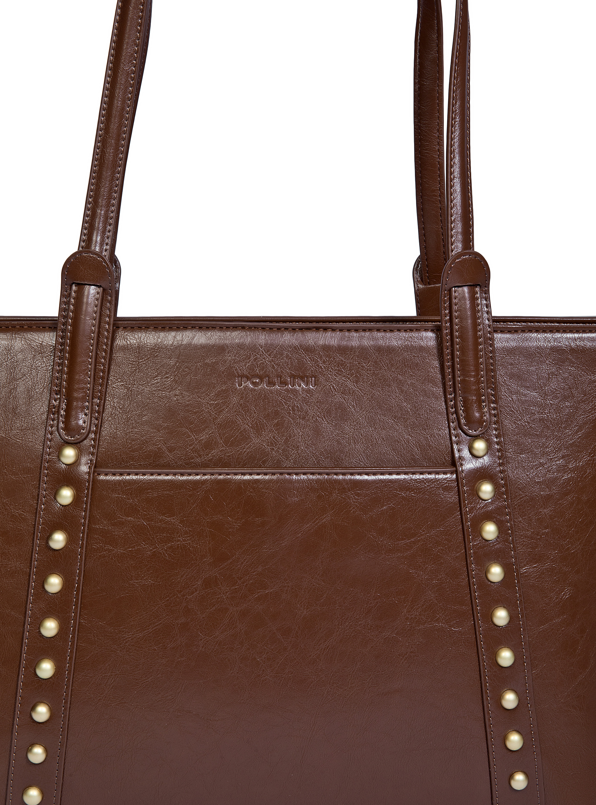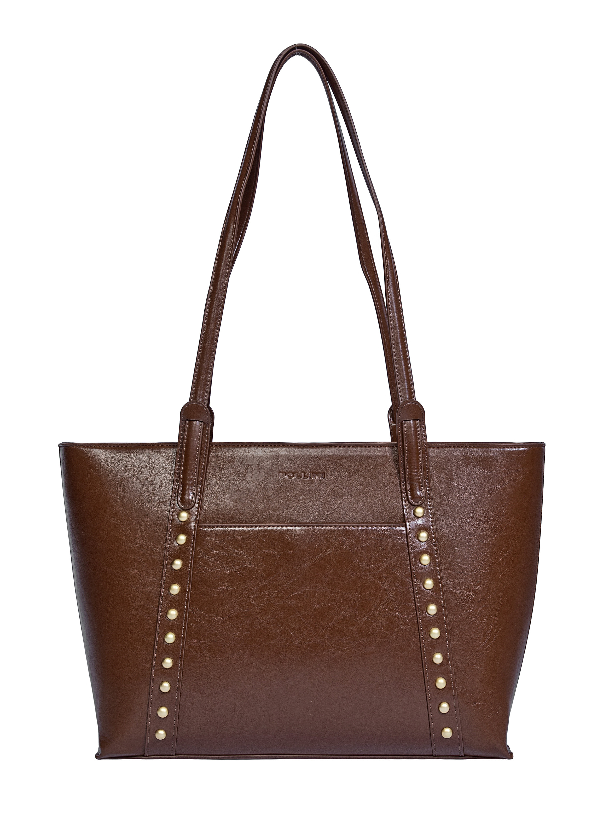 El bolso de mano Pollini es la perfecta fusión de elegancia y funcionalidad. Con medidas de 31 cm de alto, 49 cm de ancho y 9 cm de profundidad, ofrece un espacio ideal para llevar todo lo necesario en tus días laborales o académicos. Su diseño brillante, con detalles de remaches en tono dorado, agrega un toque vanguardista que resalta tu personalidad. Un accesorio que no solo complementa tu outfit, sino que también expresa tu estilo moderno y seguro de sí misma.