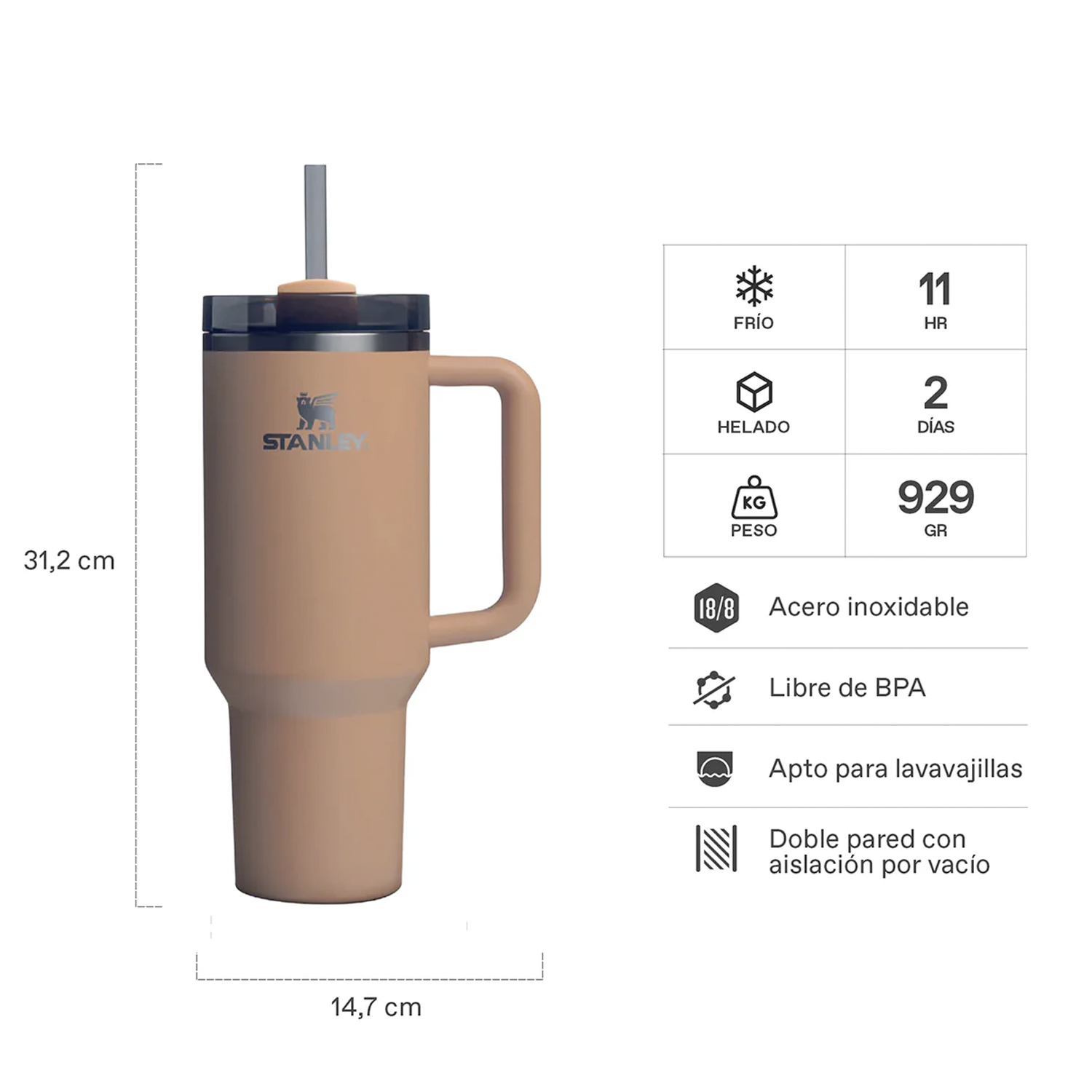 El vaso Stanley Quencher H2.0 Adventure 1.18 L es tu aliado perfecto para mantenerte hidratado todo el día. Fabricado con acero inoxidable reciclado y aislamiento al vacío de doble pared, conserva tus bebidas frías por 11 horas y con hielo hasta 2 días. Su tapa FlowState™ de tres posiciones y su bombilla reutilizable ofrecen comodidad y versatilidad en cualquier momento. Ideal para entrenamientos, viajes o tu rutina diaria.