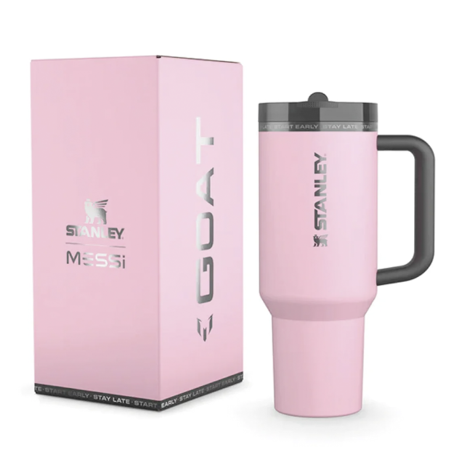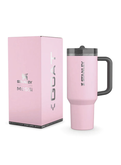 Hidrátate con estilo con el Quencher Protour Pink Messi x Stanley 1913. Fabricado en acero inoxidable reciclado con aislamiento al vacío de doble pared, mantiene tus bebidas frías hasta 11 horas y con hielo hasta 48. Su tapa Flip Straw hermética y su mango texturizado garantizan comodidad y cero fugas, ideal para acompañarte dentro y fuera de la cancha.