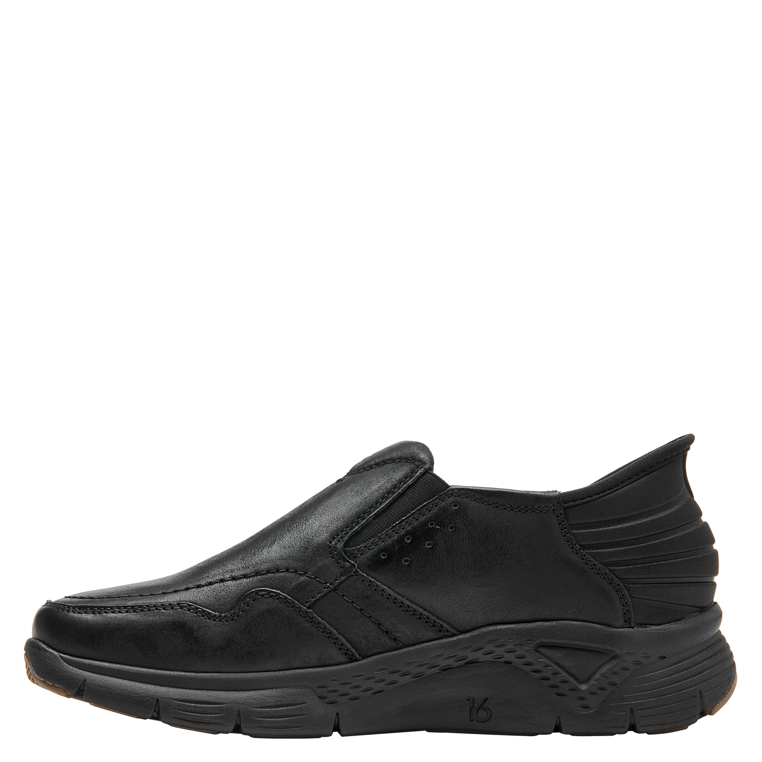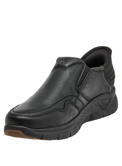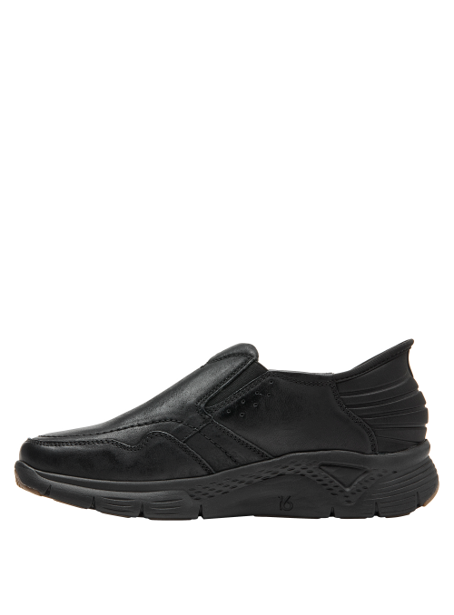 La Zapatilla de hombre de 16 HRS combina un diseño elegante y sobrio en cuero negro, ideal para quienes buscan comodidad y estilo minimalista. Su silueta sin cordones y suela ancha aseguran estabilidad, mientras que el acabado liso y brillante del cuero añade un toque sofisticado.