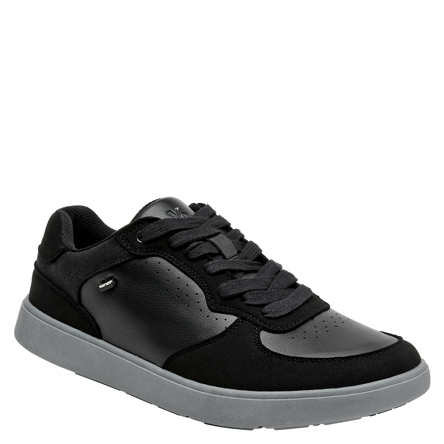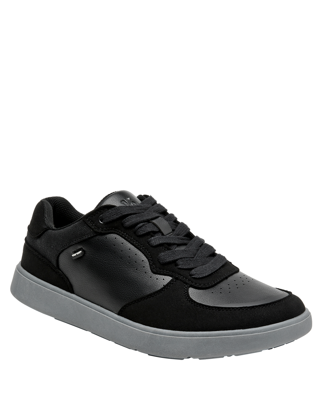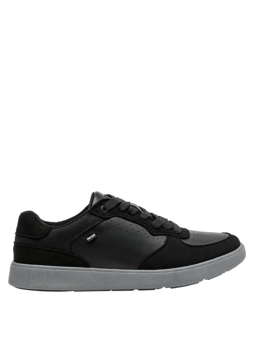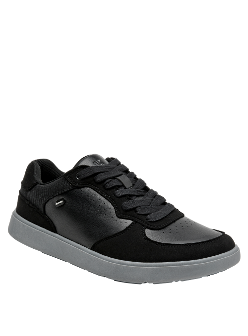 Zapatilla urbana para hombre en color negro, diseñada con capellada de material sintético y forro de mesh que favorece la ventilación. Presenta punta redonda y suela plana de 3 cm que aporta estabilidad en el día a día. Detalles funcionales como cordones clásicos y ojales reforzados completan un look limpio y versátil, ideal para uso cotidiano y desplazamientos urbanos.