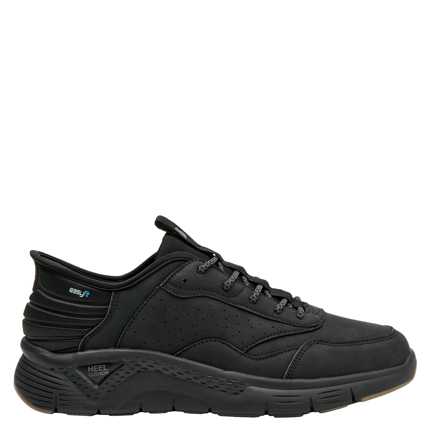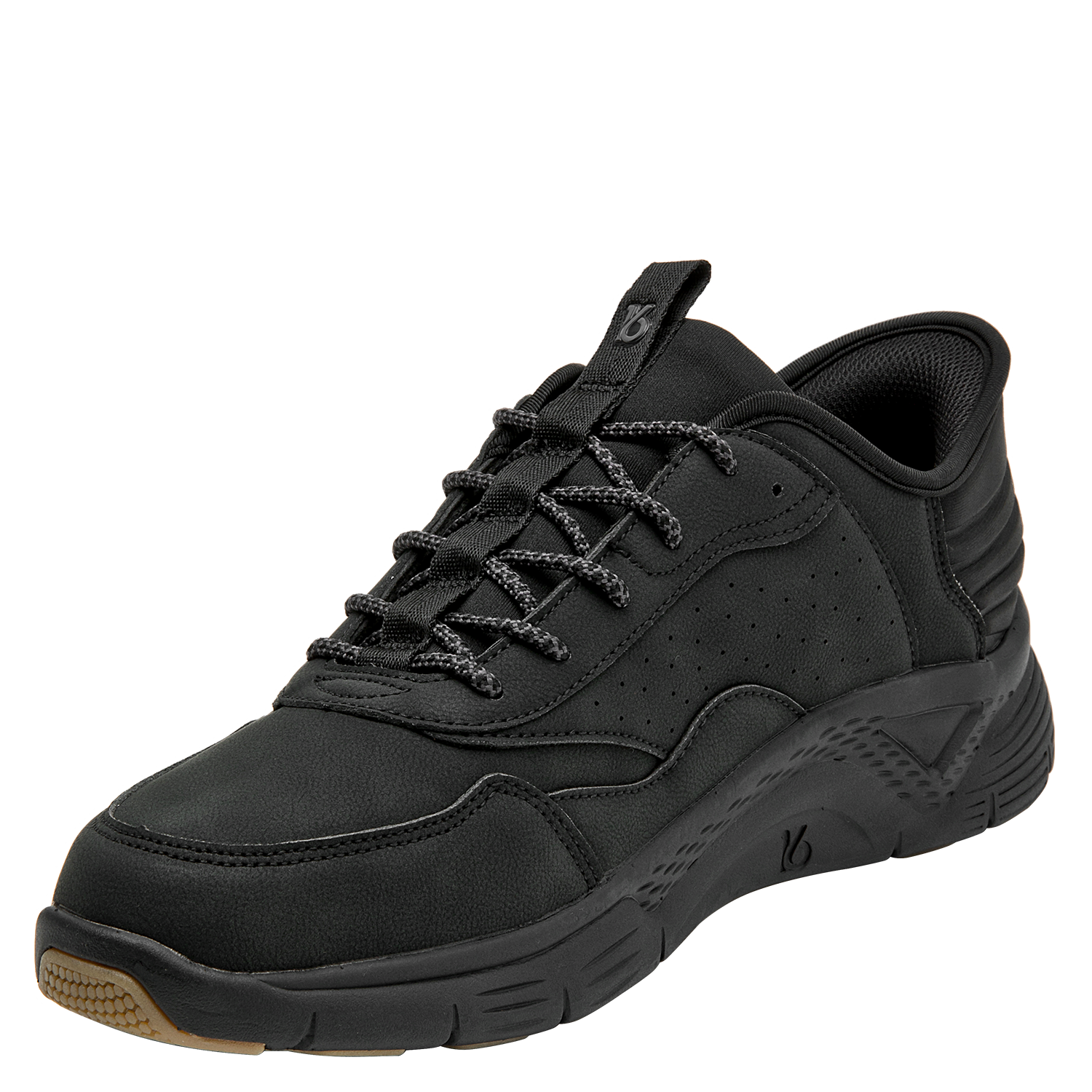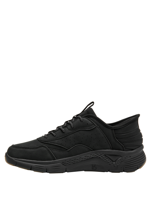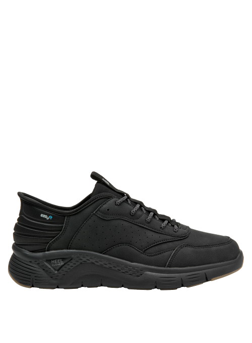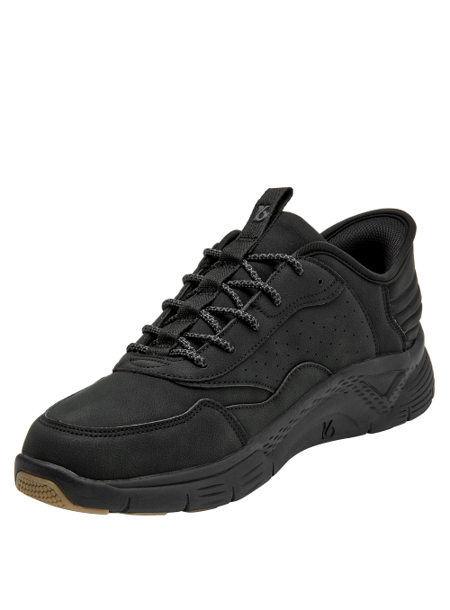 Zapatilla urbana para hombre en color negro, fabricada en material sintético con forro de mesh que favorece una ventilación suave. Incorpora punta redonda y suela plana de 4.5 cm que entrega una elevación discreta y sensación de estabilidad. De líneas limpias y terminaciones sobrias, se combina con facilidad para un estilo casual de todos los días.