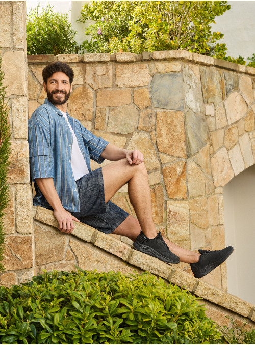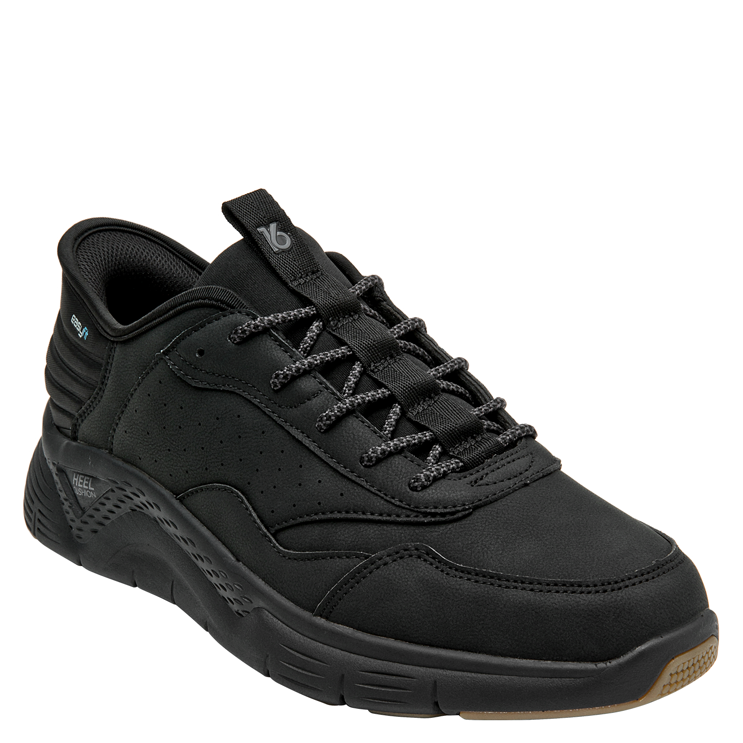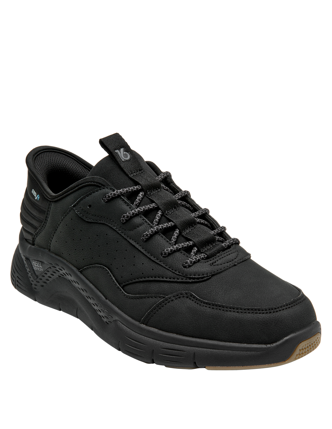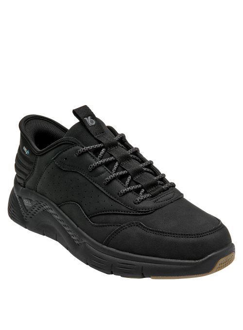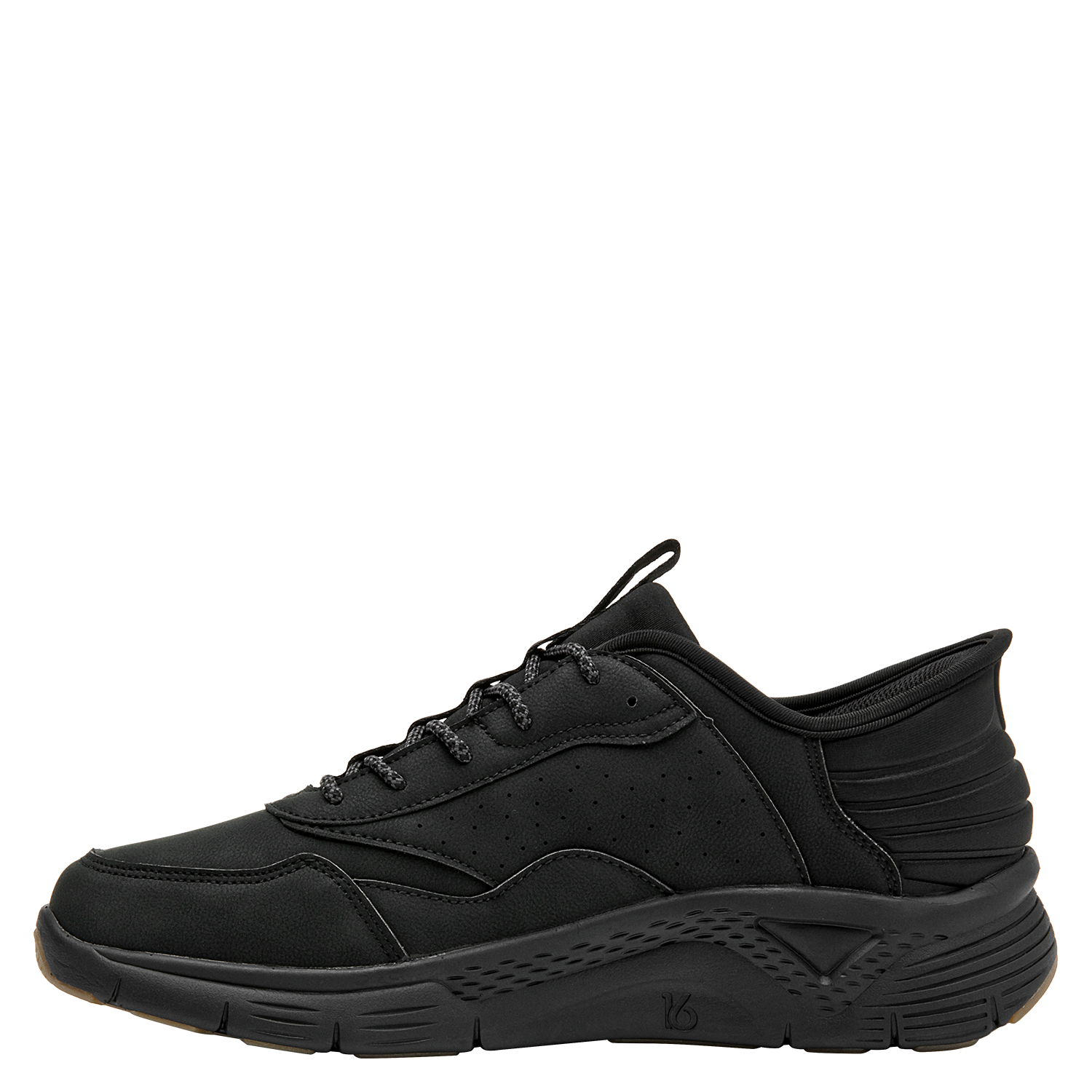 Zapatilla urbana para hombre en color negro, fabricada en material sintético con forro de mesh que favorece una ventilación suave. Incorpora punta redonda y suela plana de 4.5 cm que entrega una elevación discreta y sensación de estabilidad. De líneas limpias y terminaciones sobrias, se combina con facilidad para un estilo casual de todos los días.
