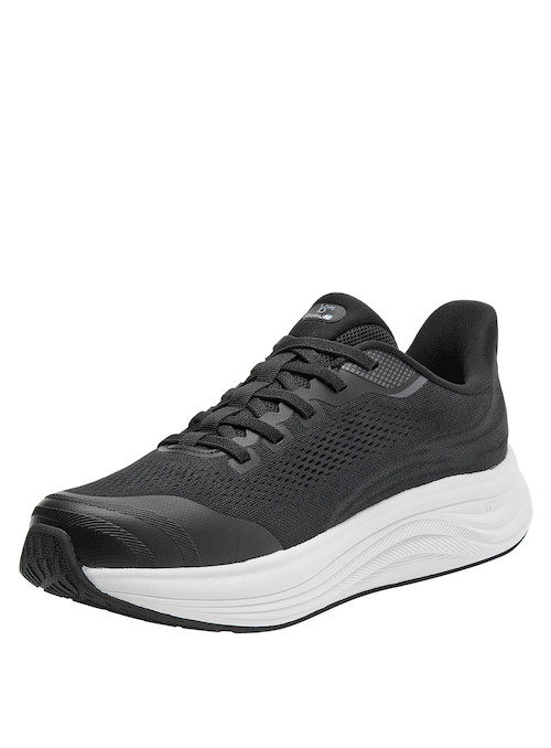 Diseñada para acompañar tu ritmo diario, esta zapatilla negra de 16 HRS combina una capellada textil con una suela blanca de 5 cm, logrando un equilibrio atractivo entre estilo y funcionalidad. Su sistema EASYFIT facilita un calce rápido y preciso, mientras que la puntera redonda y los refuerzos internos aportan estabilidad y soporte a lo largo de toda la jornada.