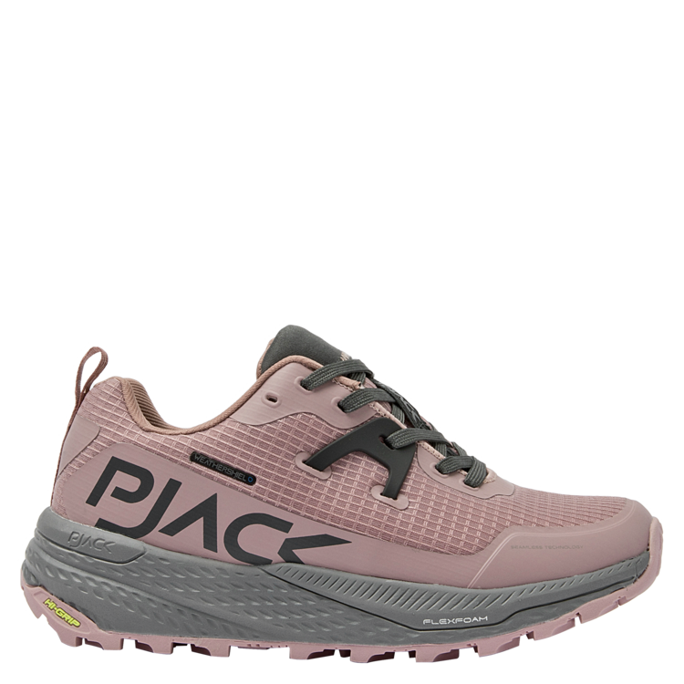 En la zapatilla de mujer CHAKA WS de PJACK J772, el tomador EXOTRAX atraviesa una capellada de bajísimo peso, generando la perfecta estabilidad y sujeción para los runners más intrépidos. La membrana WEATHERSHIELD previene la entrada de humedad manteniendo una ventilación interior adecuada.