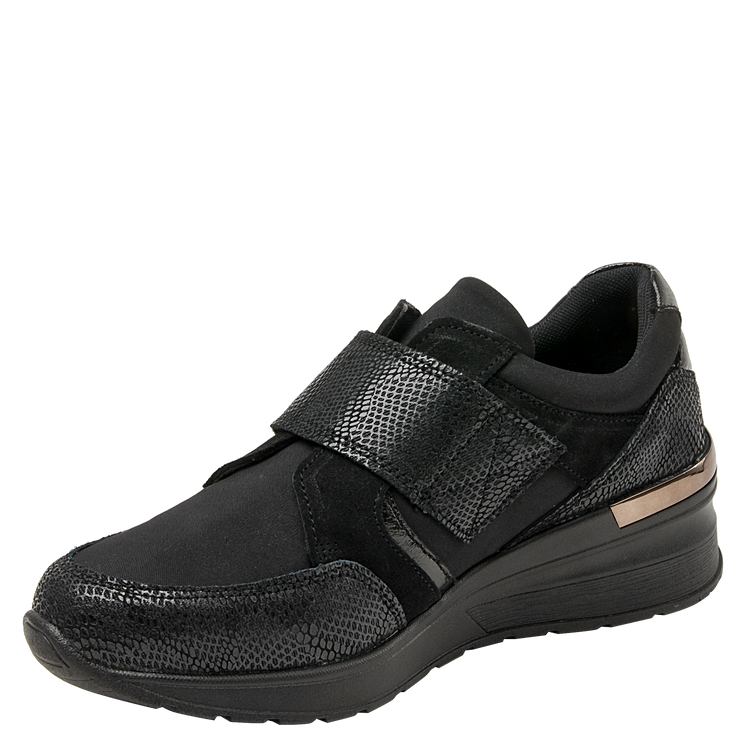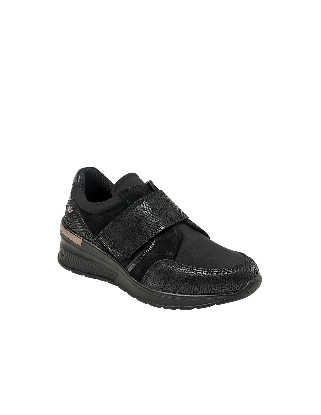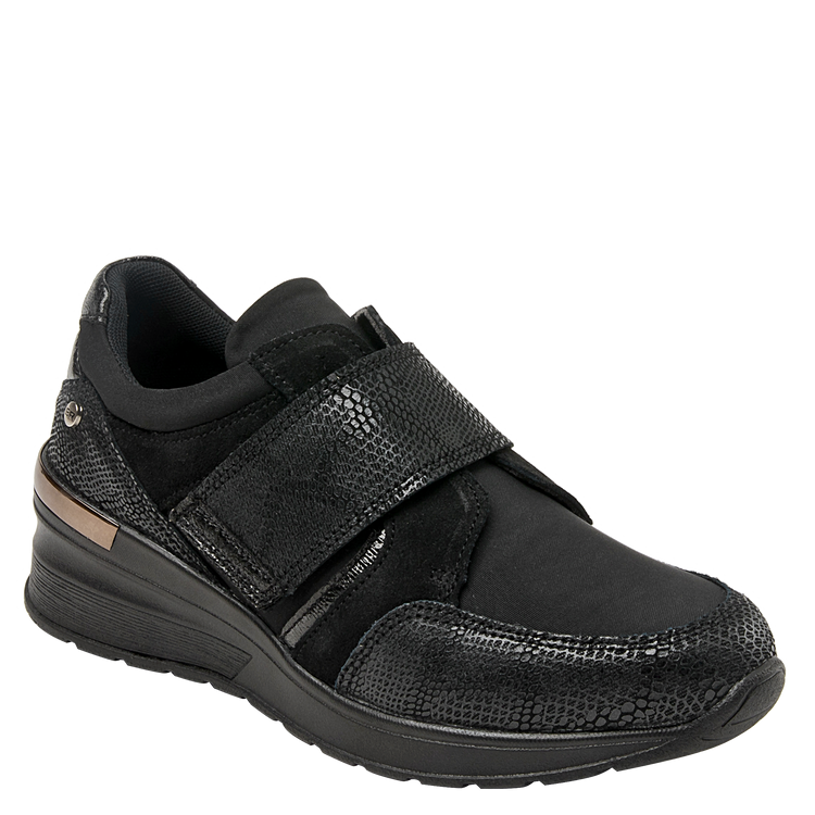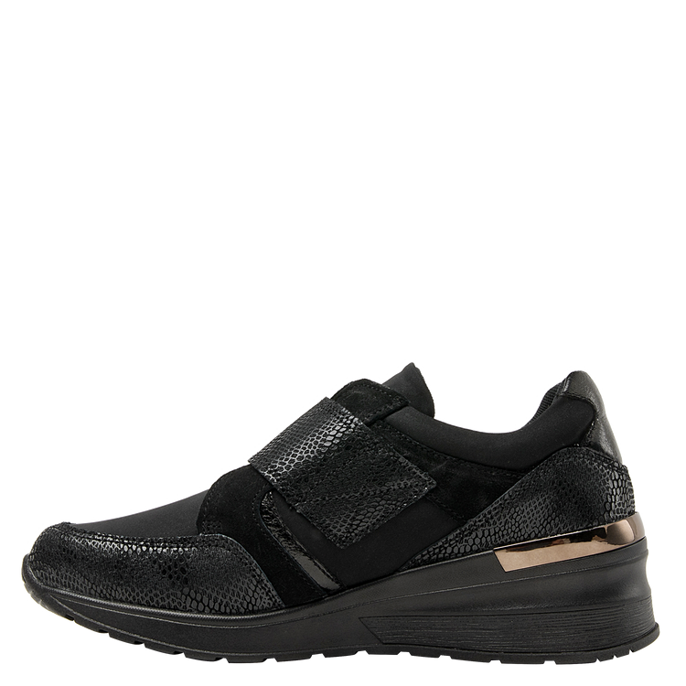 El material utilizado en el exterior para su elaboración es cuero / textil, meticulosamente trabajado para ofrecerte acabados premium. El taco tipo cuña de 6 cm proporciona la altura perfecta para estilizar tu figura sin comprometer la comodidad de tus actividades. Cuenta con un suave forro de malla mesh, punta redonda y una altura de caña de 4.5 cm.