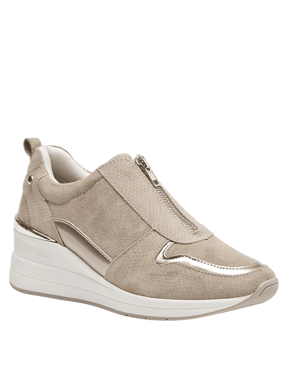 La zapatilla de mujer de Bruno Rossi destaca por su diseño moderno y elegante, perfecto para el uso urbano. Con una suela gruesa que proporciona mayor altura y comodidad, esta zapatilla cuenta con un diseño antideslizante que mejora la estabilidad al caminar. El cierre de cremallera facilita el calce y ajuste, eliminando la necesidad de cordones. Su material superior de cuero presenta una textura con patrón reptil, añadiendo un toque sofisticado, mientras que el refuerzo en el tacón ofrece un soporte adicional. En conjunto, es una zapatilla que combina estilo y funcionalidad, ideal para diversas ocasiones.