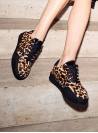 La Zapatilla de mujer de Zappa destaca por su diseño audaz y moderno, con un exterior de cuero en estampado de leopardo que aporta un toque salvaje y atrevido. Sus tonos marrones, beige y negros, junto con las pequeñas tachuelas plateadas, crean un estilo chic y ligeramente punk. Ideal para quienes buscan calzado con personalidad.
