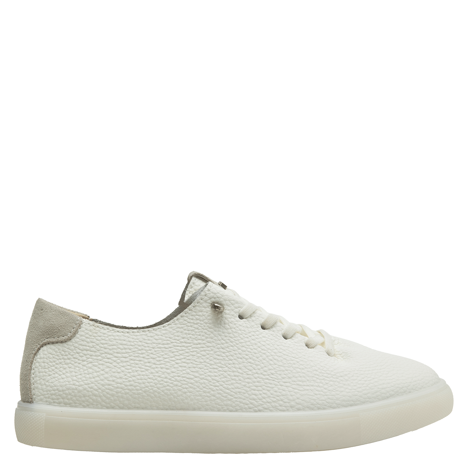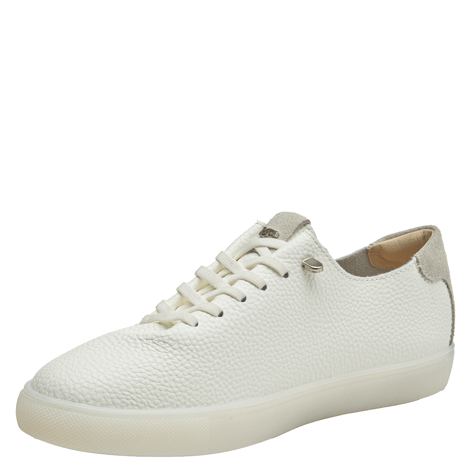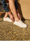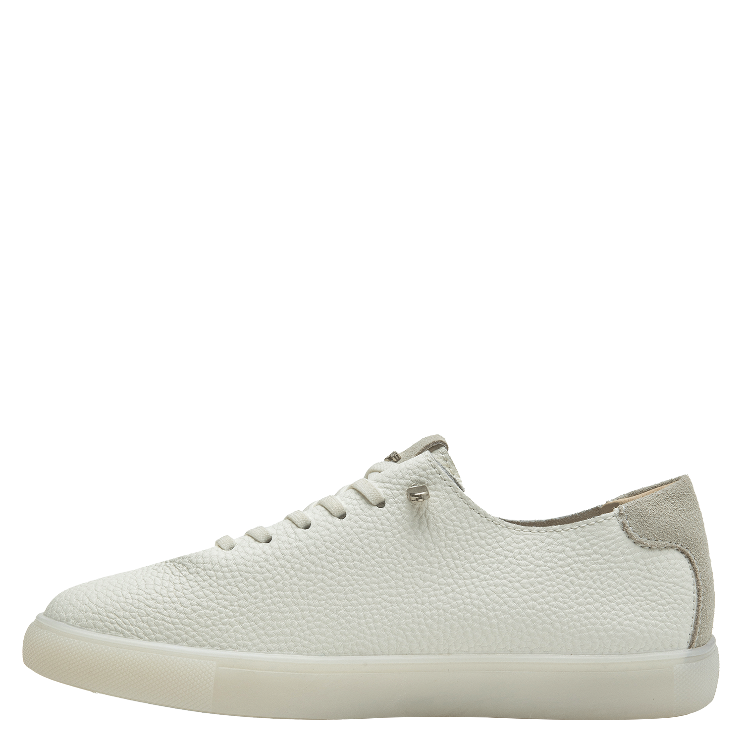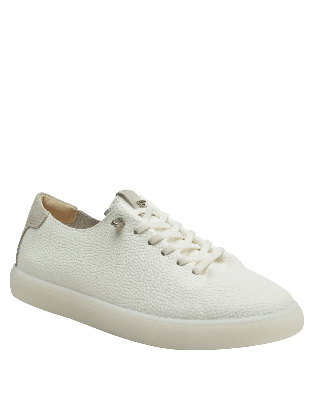 La Zapatilla de mujer de 16 HRS destaca por su exterior de cuero con textura granulada, ofreciendo un diseño elegante y sofisticado. El blanco marfil predomina, aportando versatilidad, mientras los detalles en gris claro en el talón añaden un contraste sutil. Con un taco bajo de 2 cm, estas zapatillas combinan estilo y comodidad.