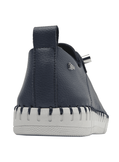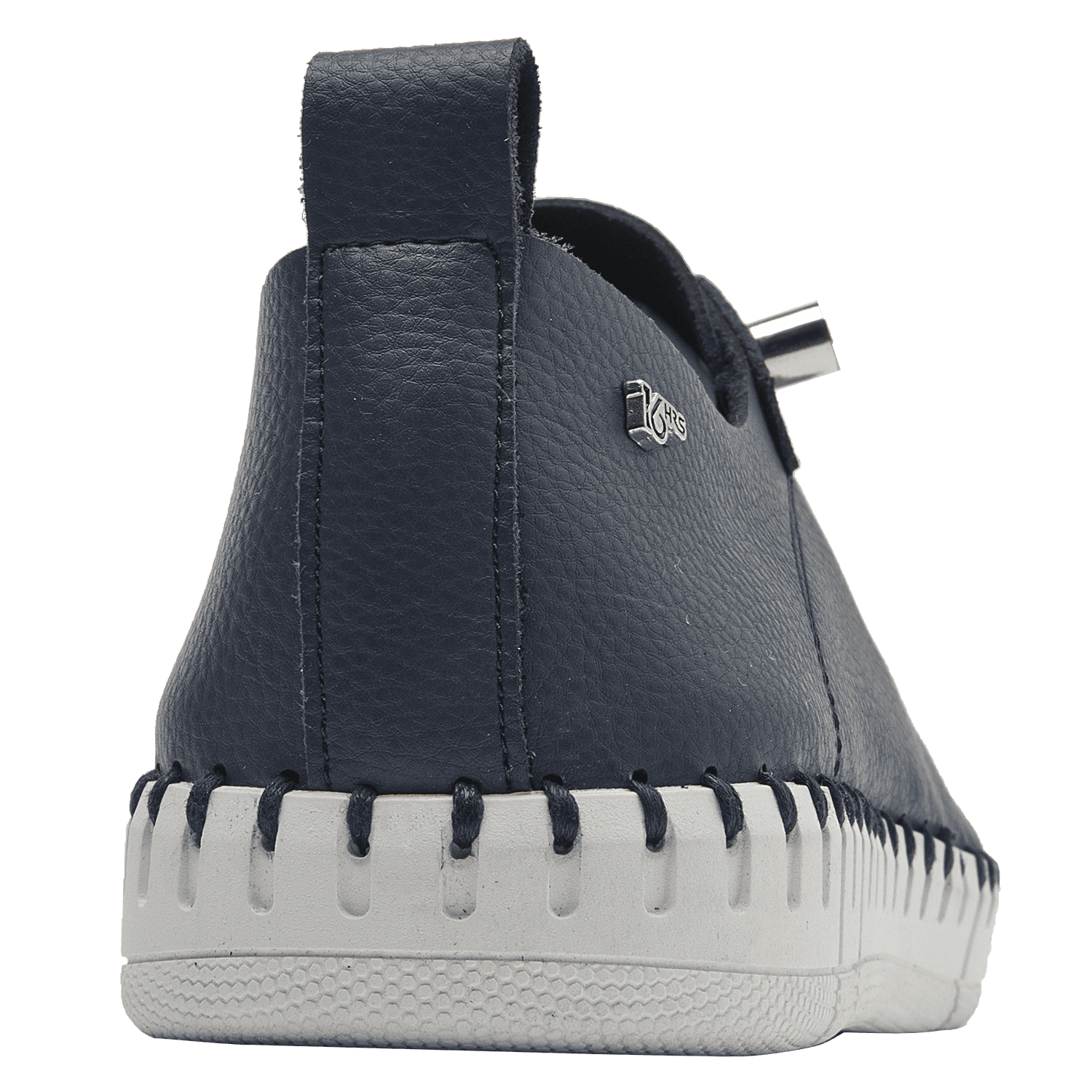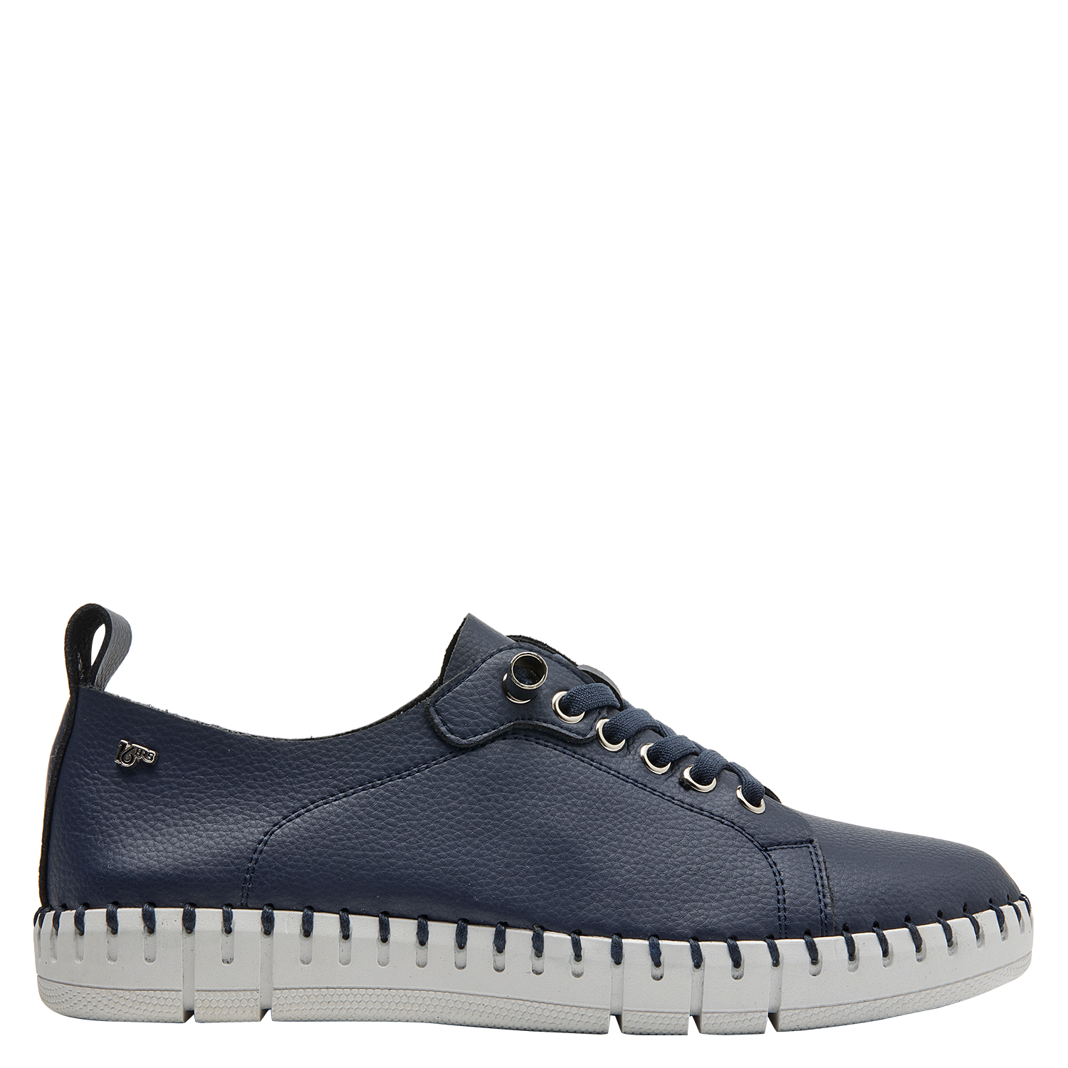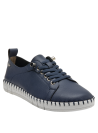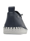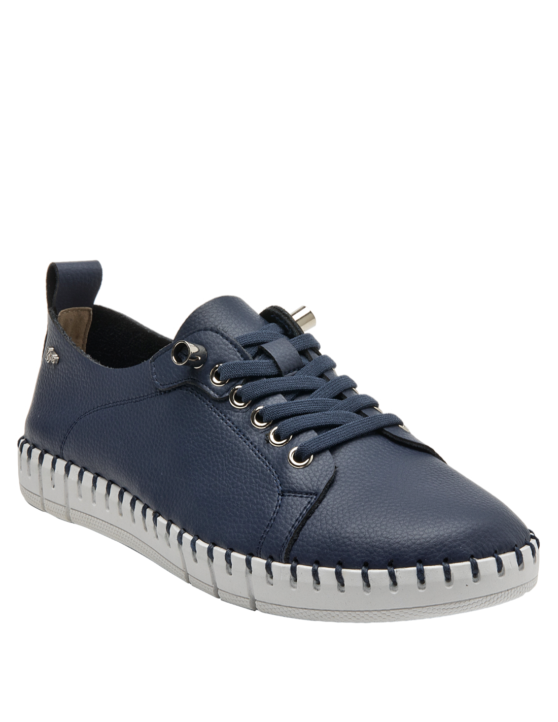 Zapato casual de cuero para mujer en color azul, de punta redonda y taco plano de 2 cm. Su capellada lisa aporta un look limpio y versátil, mientras el forro de microfibra brinda una sensación suave al contacto. La horma clásica y la altura baja favorecen un uso diario cómodo, ideal para quienes buscan un calzado práctico con estética depurada.
