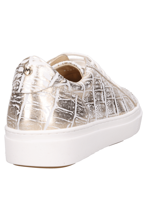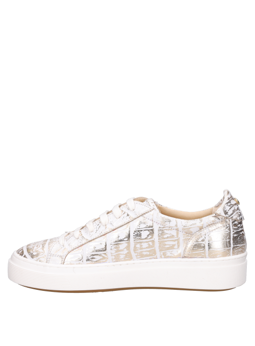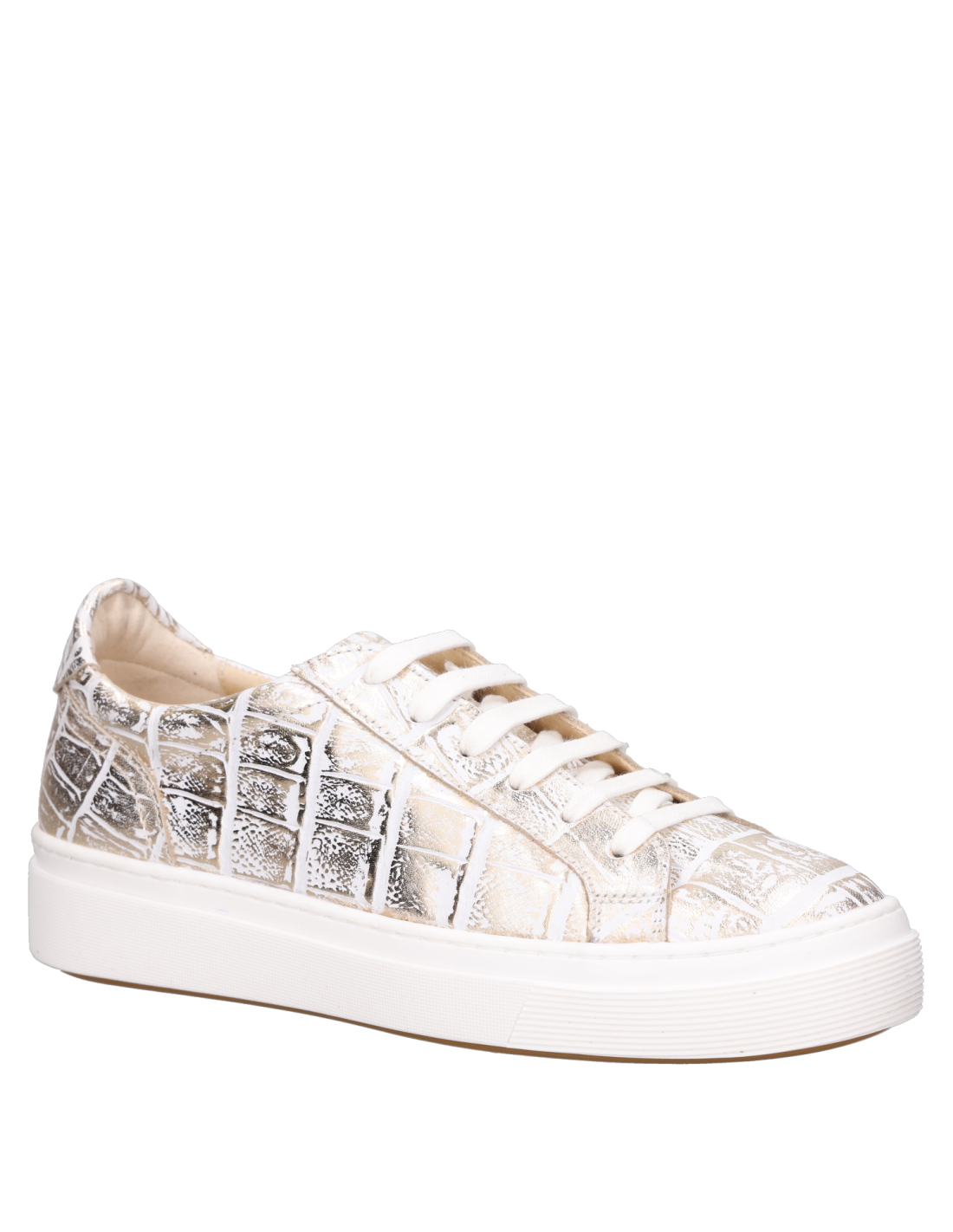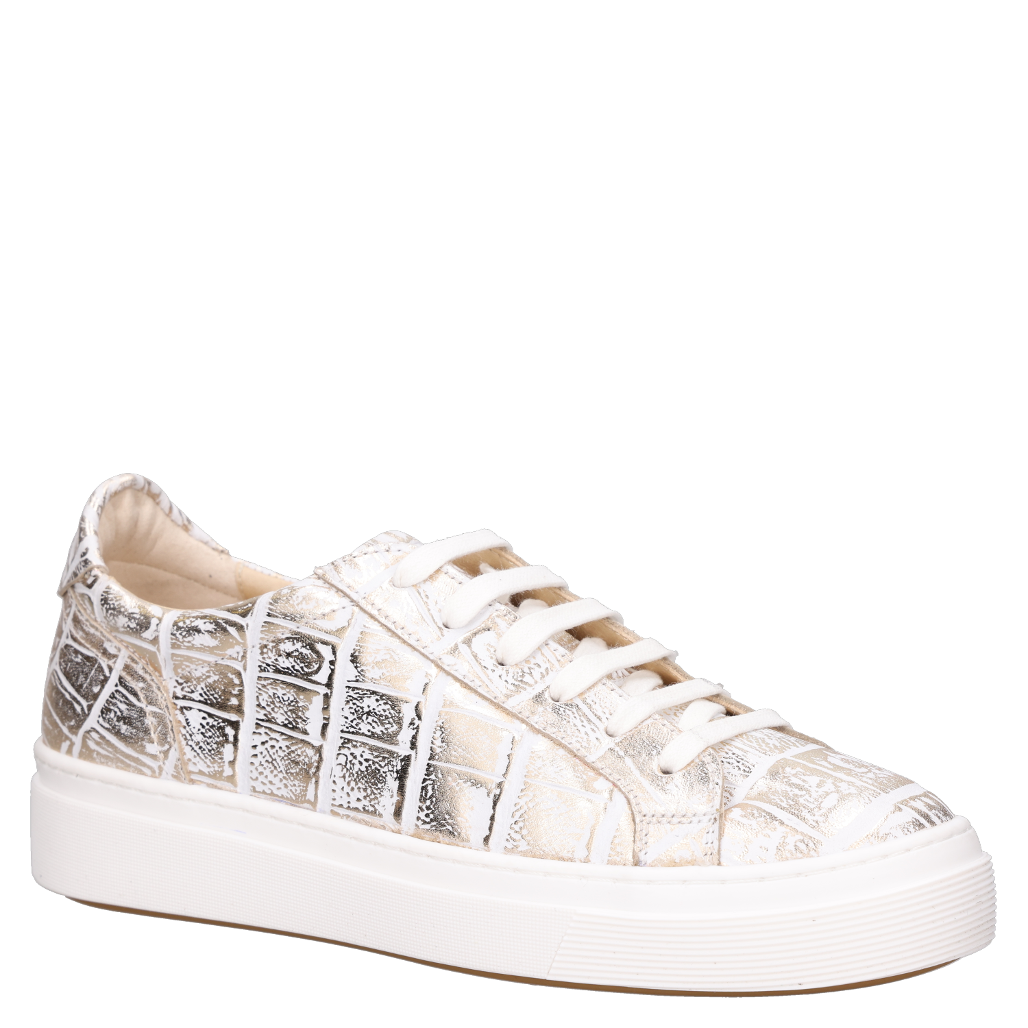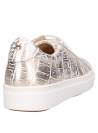 Zapatilla casual de mujer en color oro, confeccionada en cuero, con punta redonda y taco plano de 2 cm. Presenta un perfil limpio con costuras prolijas y un interior con forro On Steam para una sensación agradable al contacto. El acabado dorado aporta un toque moderno y fácil de combinar, ideal para un look relajado sin perder estilo.