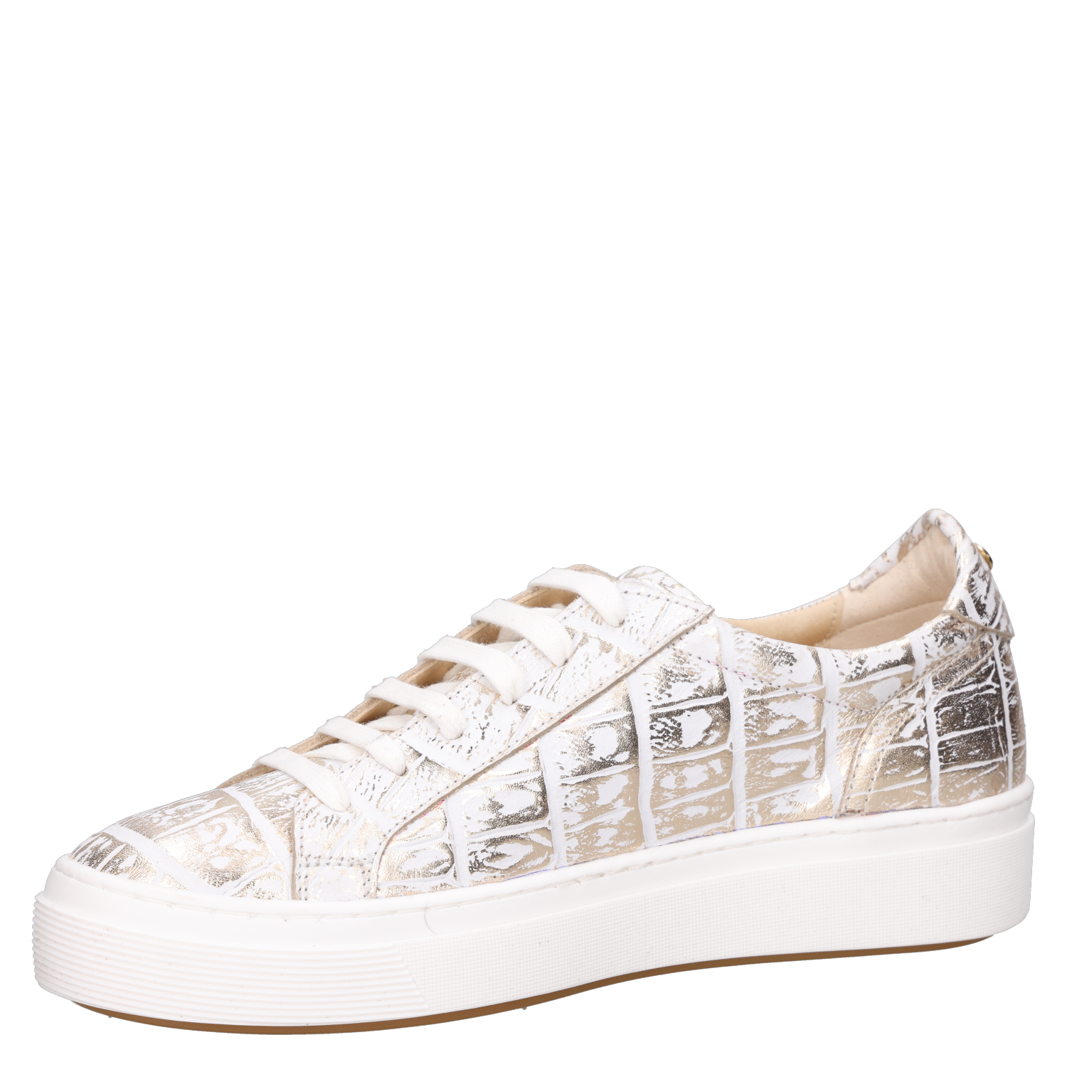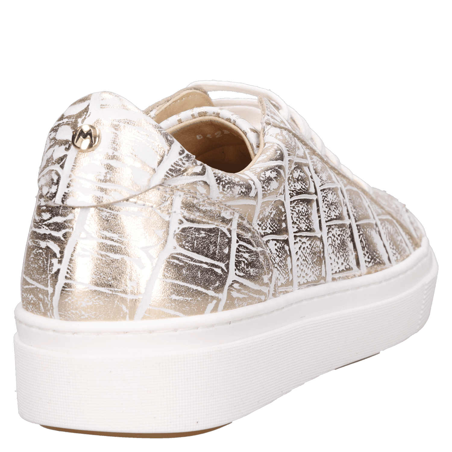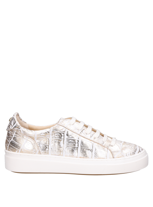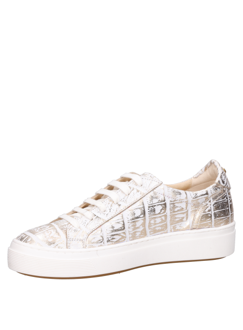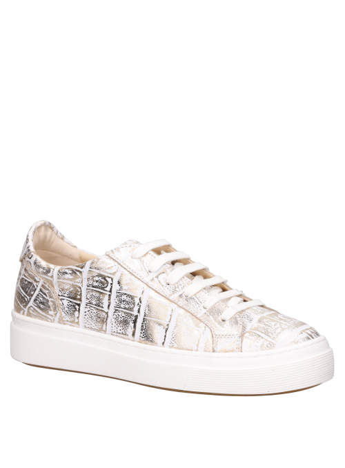 Zapatilla casual de mujer en color oro, confeccionada en cuero, con punta redonda y taco plano de 2 cm. Presenta un perfil limpio con costuras prolijas y un interior con forro On Steam para una sensación agradable al contacto. El acabado dorado aporta un toque moderno y fácil de combinar, ideal para un look relajado sin perder estilo.