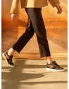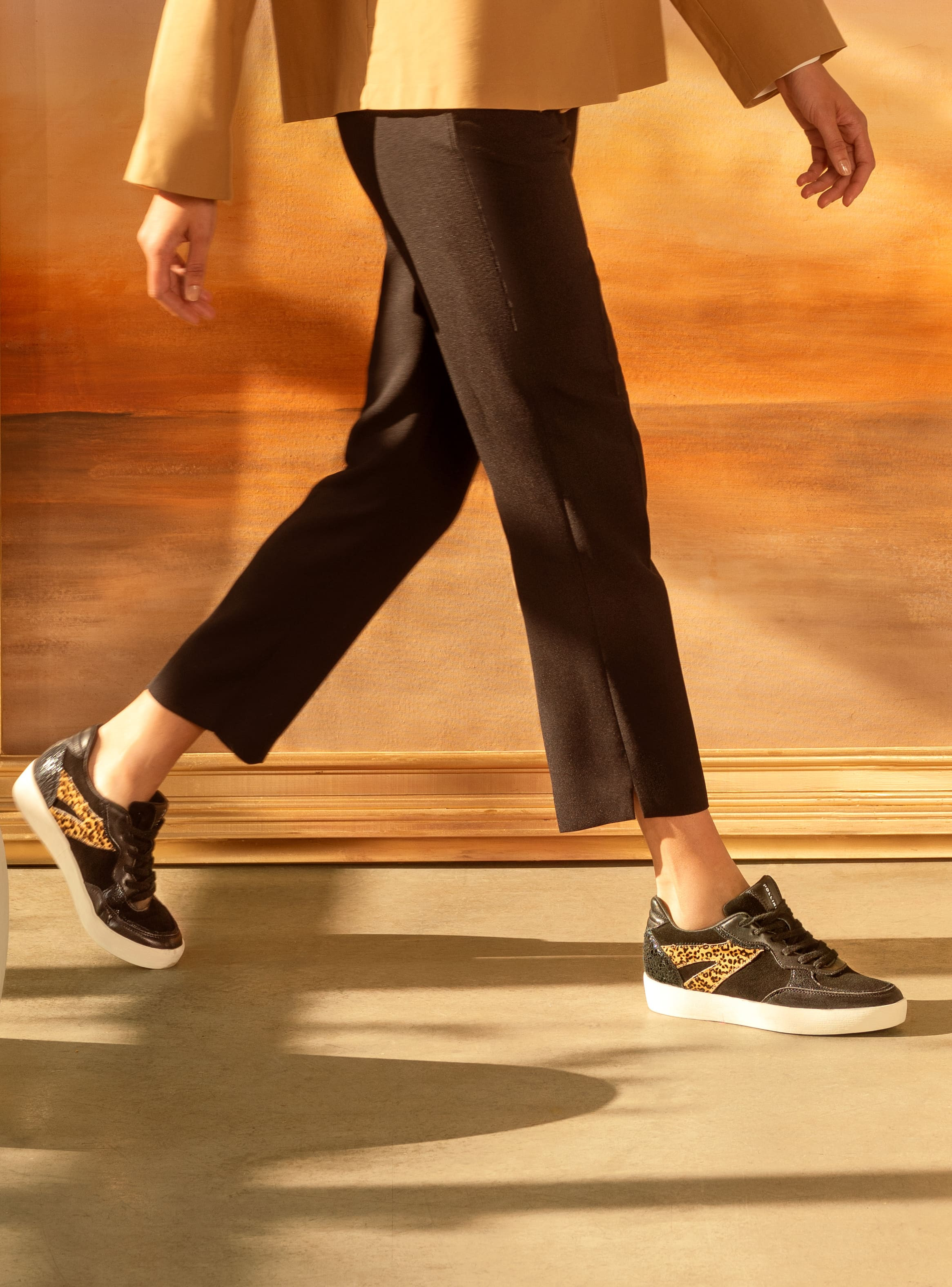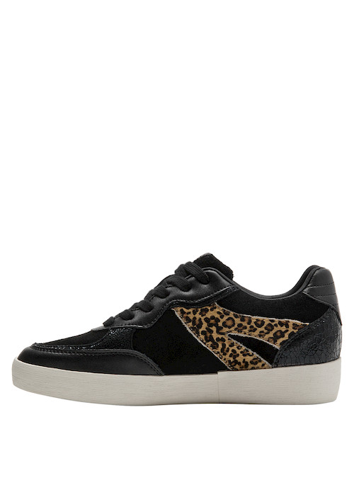 Vive la experiencia de la moda con estas impresionantes zapatillas en elegante negro, combinadas con un llamativo detalle de leopardo. Fabricadas en suave cuero, su diseño versátil y su taco plano de 3 cm ofrecen comodidad y estilo en cada paso. La mezcla de texturas brinda un toque moderno que resalta tu personalidad vanguardista. Ideal para un look casual-chic con jeans ajustados o para lucir sofisticada con una falda amplia. Atrévete a ser la reina de la moda todos los días.