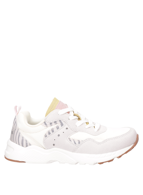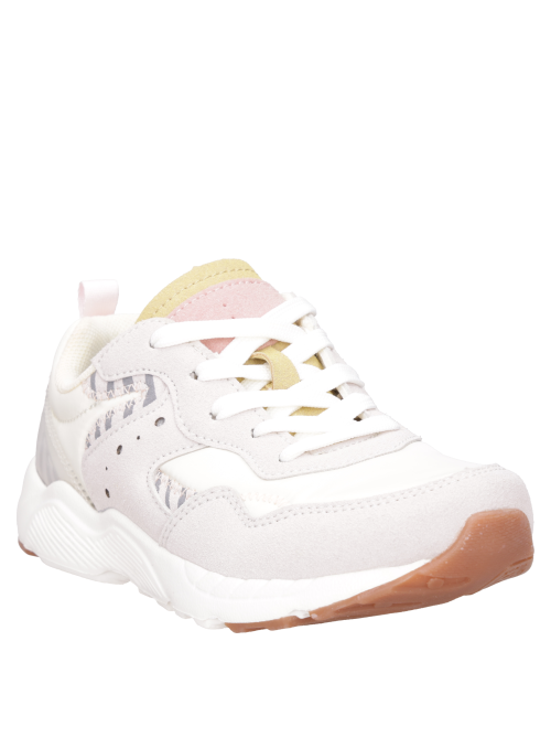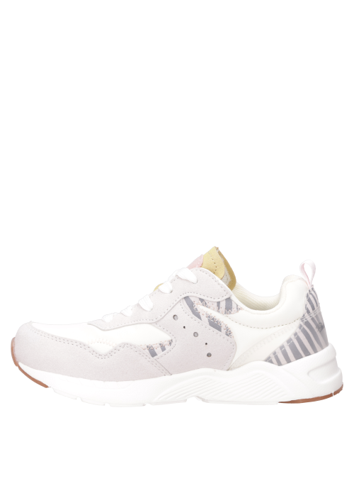 Zapatilla urbana para niña en color balnco, de look limpio y cómodo. Combina exterior de materiales resistentes con terminaciones suaves para el día a día. Punta redondeada y suela plana flexible que acompaña sus paseos y juegos con estilo sencillo y funcional. Úsala con jeans, leggings o shorts, más polera y una chaqueta liviana o parka según el clima.
