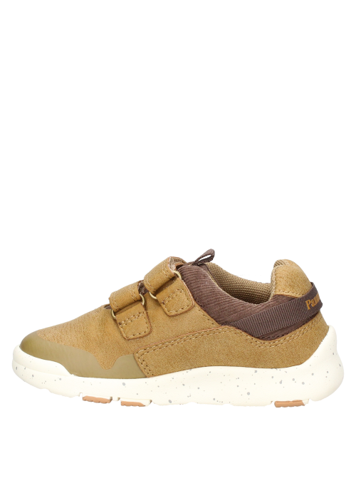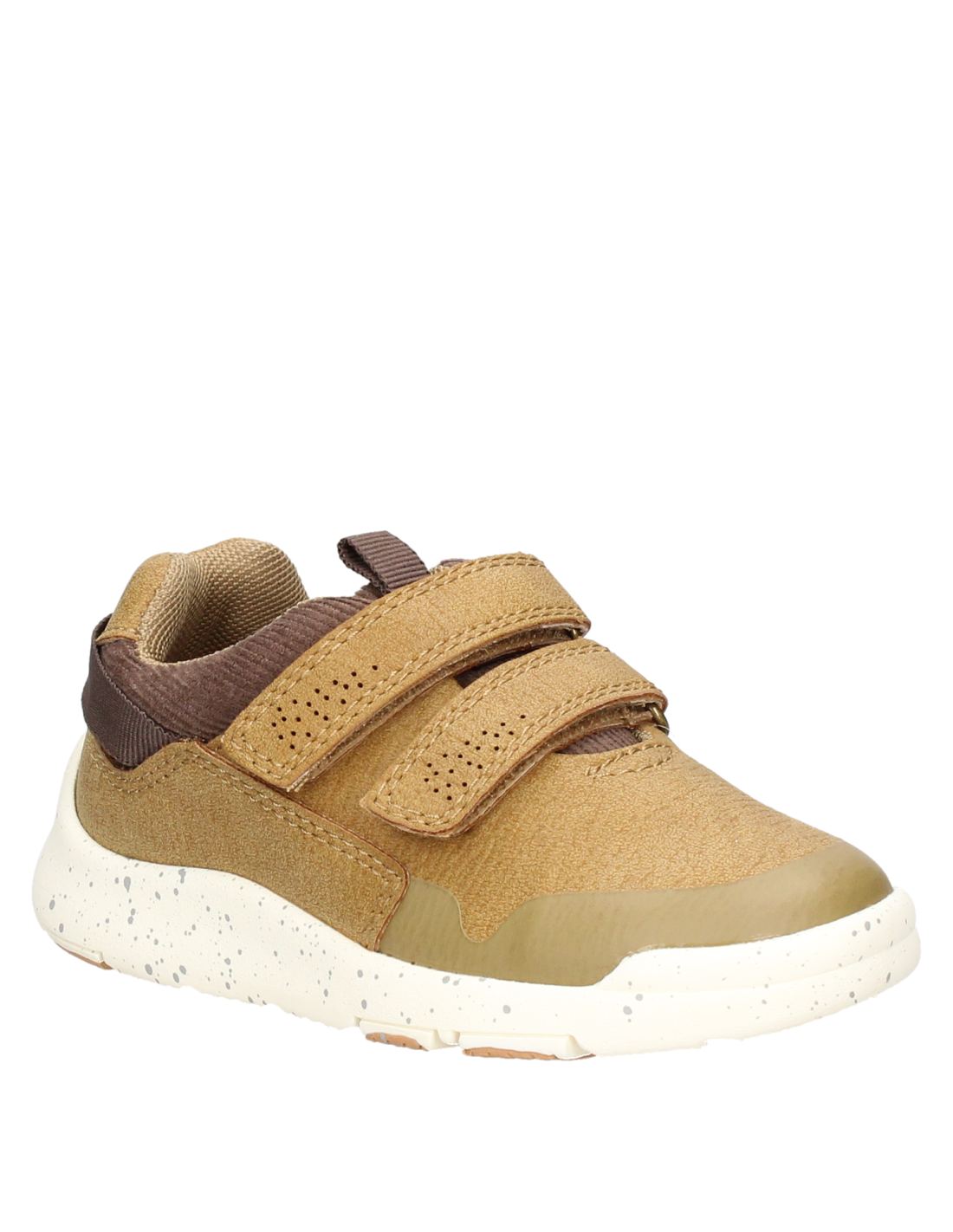 Zapato urbana infantil en color camel, de look versátil con mezcla de materiales y suela firme que acompaña cada paso. Confeccionada en sintético y textil, forro textil que aporta suavidad, punta redonda para mayor comodidad y taco plano que mantiene un andar natural. Ligera y resistente para explorar la ciudad y el parque con ritmo curioso y libre. Combínala con jeans, polera y chaqueta liviana, o con shorts y una parka delgada para días cambiantes.