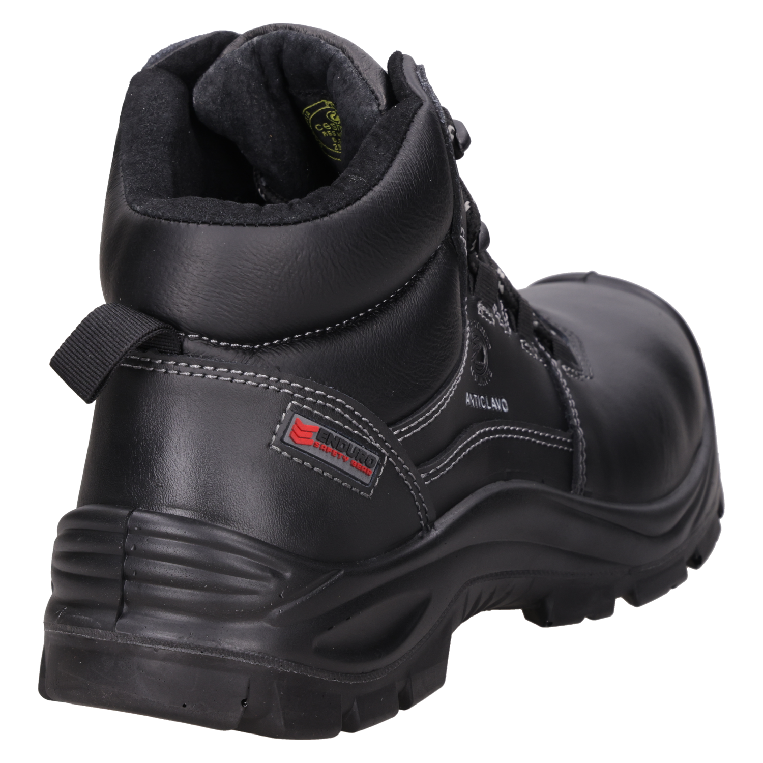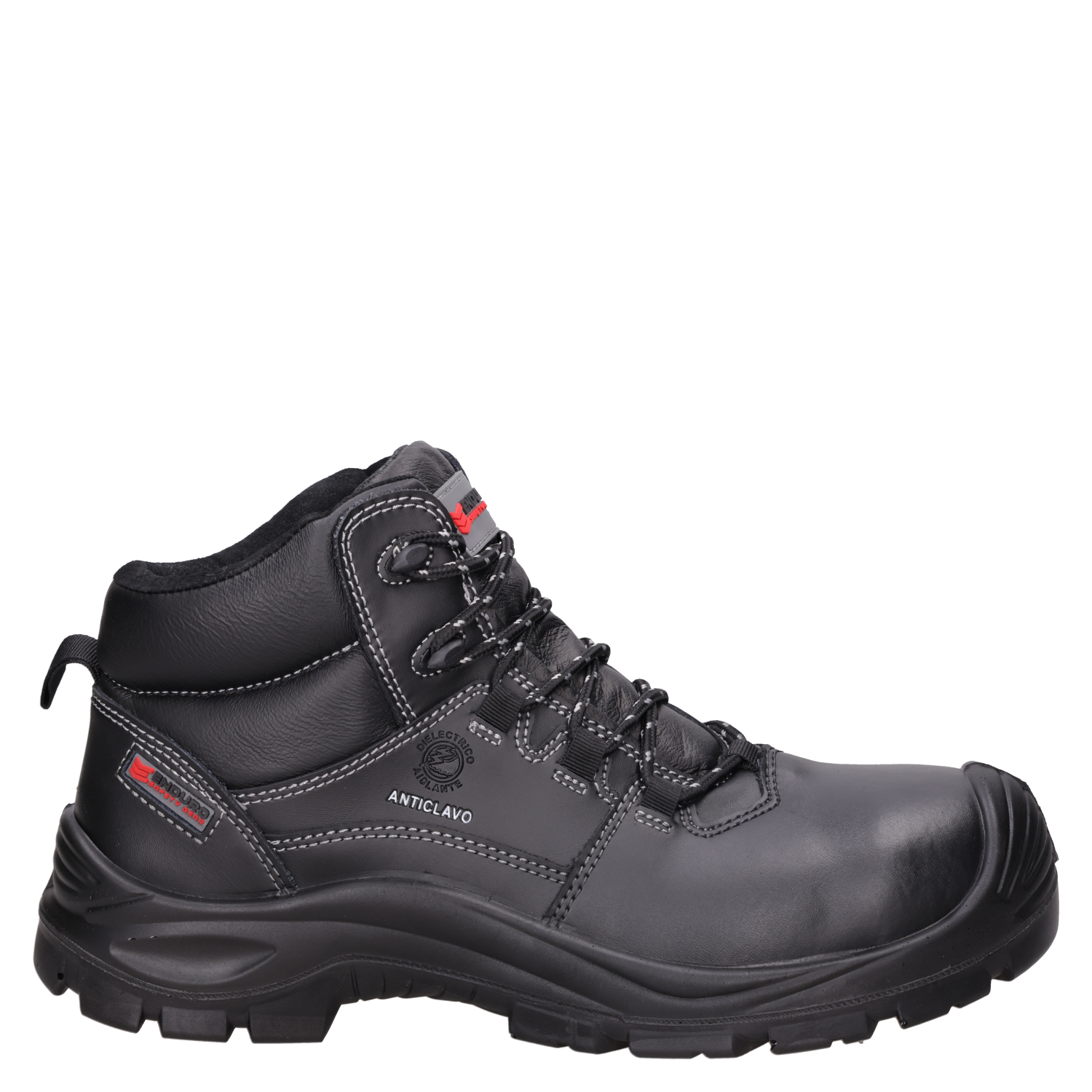 El zapato de hombre de ENDURO, te brinda la máxima seguridad al momento de realizar las tareas más exigentes y riesgosas, exterior está hecho de cuero, con taco plano de 6 cm, una altura de caña de 9 cm y punta de acero templado de alta resistencia según norma NCh 772/2. Cuenta con aislante eléctrico con un desempeño excepcional, plantilla compuesta por materiales confortables y resistentes que absorbe la humedad, suela resistente a hidrocarburos, antideslizante y resistente a perforaciones de clavos y cuenta con certificación CESMEC.