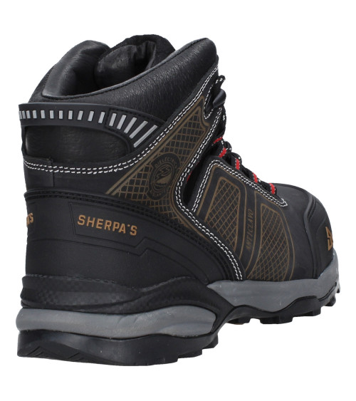 El zapato de seguridad de hombre de Sherpa's A920, te brinda la máxima seguridad al momento de realizar las tareas más exigentes y riesgosas, hecho de cuero Nobuck, con taco plano de 4 cm, una altura de caña de 14,5 cm y punta de acero templado de alta resistencia según norma NCh 772/2. Cuenta con excelente aislante térmico con un desempeño excepcional, planta compuesta por materiales confortables y resistentes a la abrasión, hidrocarburos y anticonductiva, suela antideslizante, aislante eléctrica y resistente a perforaciones de clavos, costuras reforzadas con cintas de polímero para máxima durabilidad además de contar con certificación CESMEC.