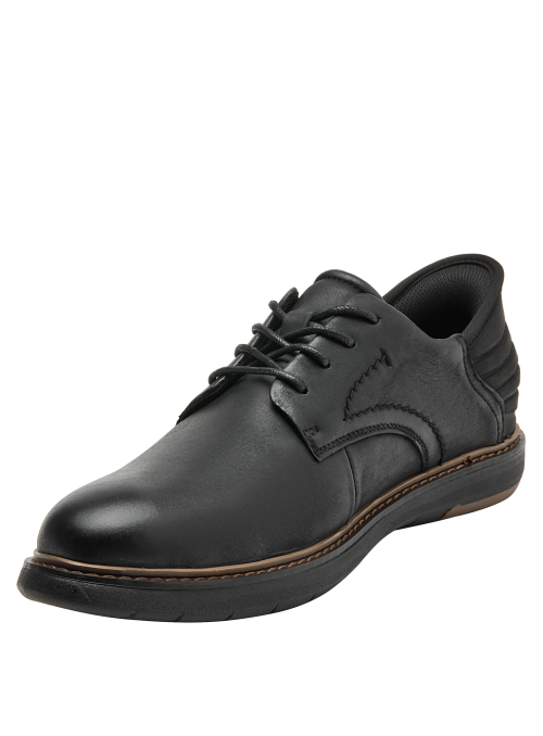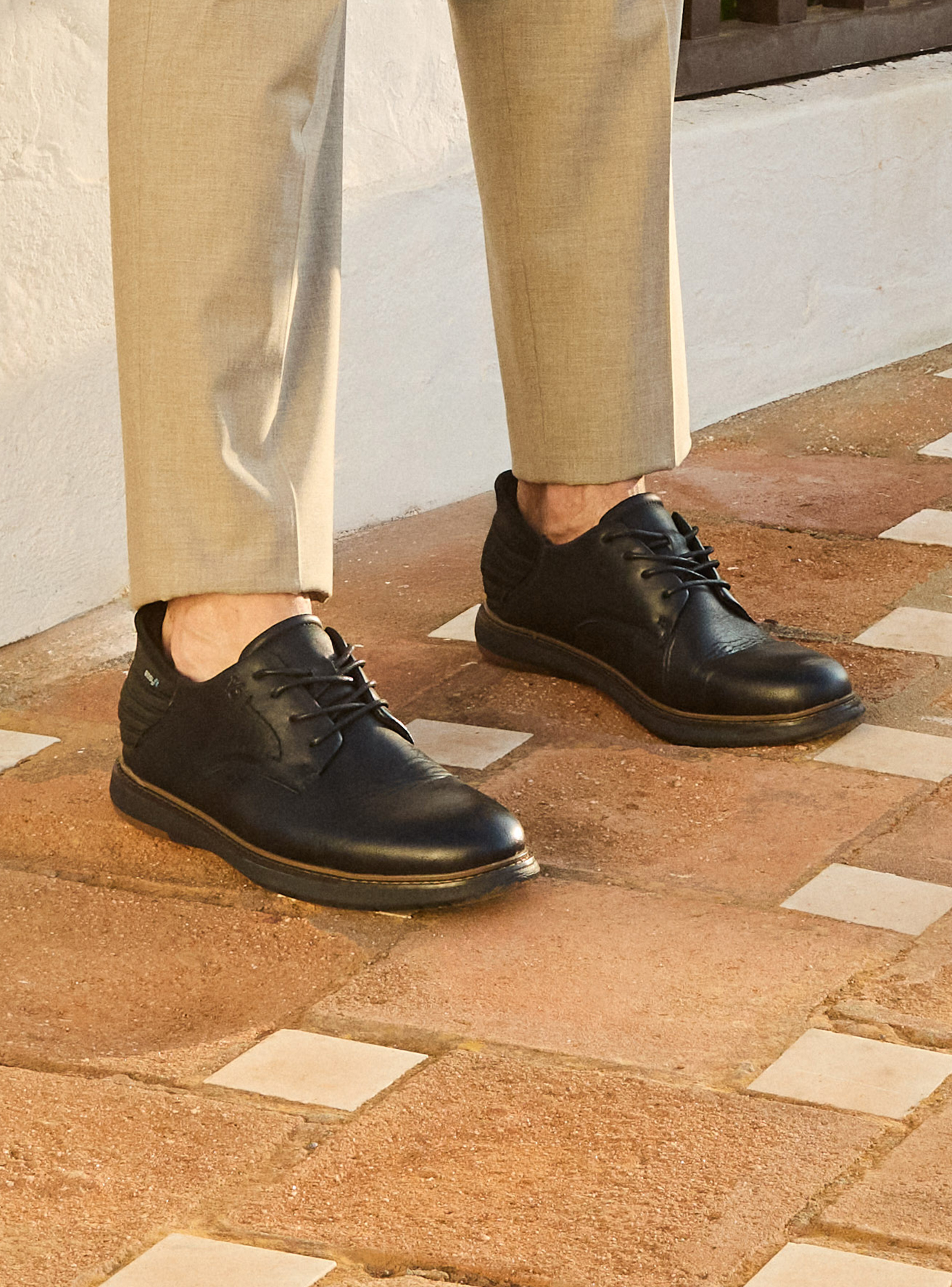 El Zapato de hombre de 16 HRS, confeccionado en cuero, ofrece una elegancia atemporal con su diseño clásico oxford. Su silueta limpia y costuras decorativas lo hacen ideal para quienes buscan un calzado sofisticado y versátil. Este zapato plano de taco bajo, con su acabado brillante, es perfecto para cualquier ocasión que requiera un toque de distinción.