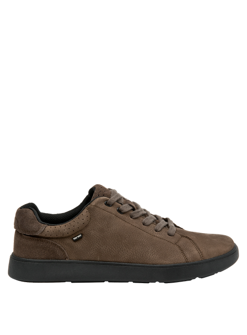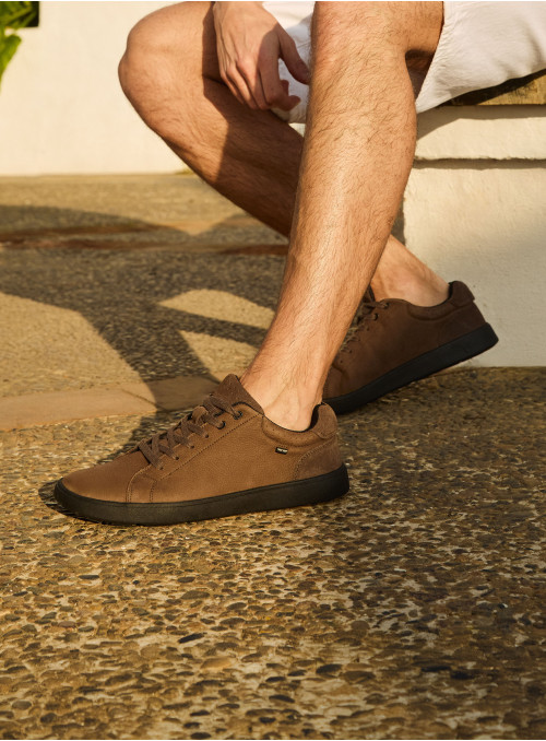 Zapato casual de cuero para hombre en color café, con punta redonda y taco plano de 3 cm. Exterior de cuero y forro textil, con suela plana de perfil bajo para un estilo limpio y actual. Costuras prolijas y diseño atemporal que se adapta a distintos momentos del día.