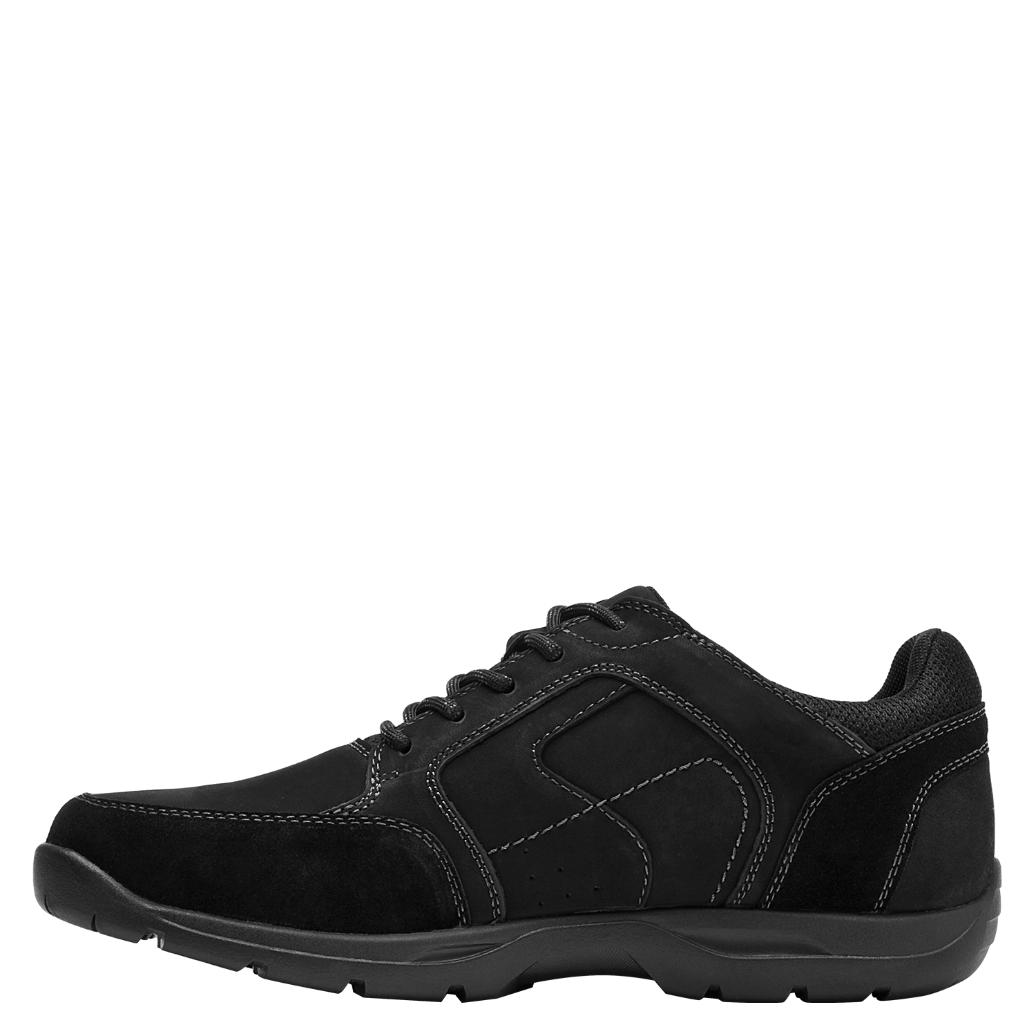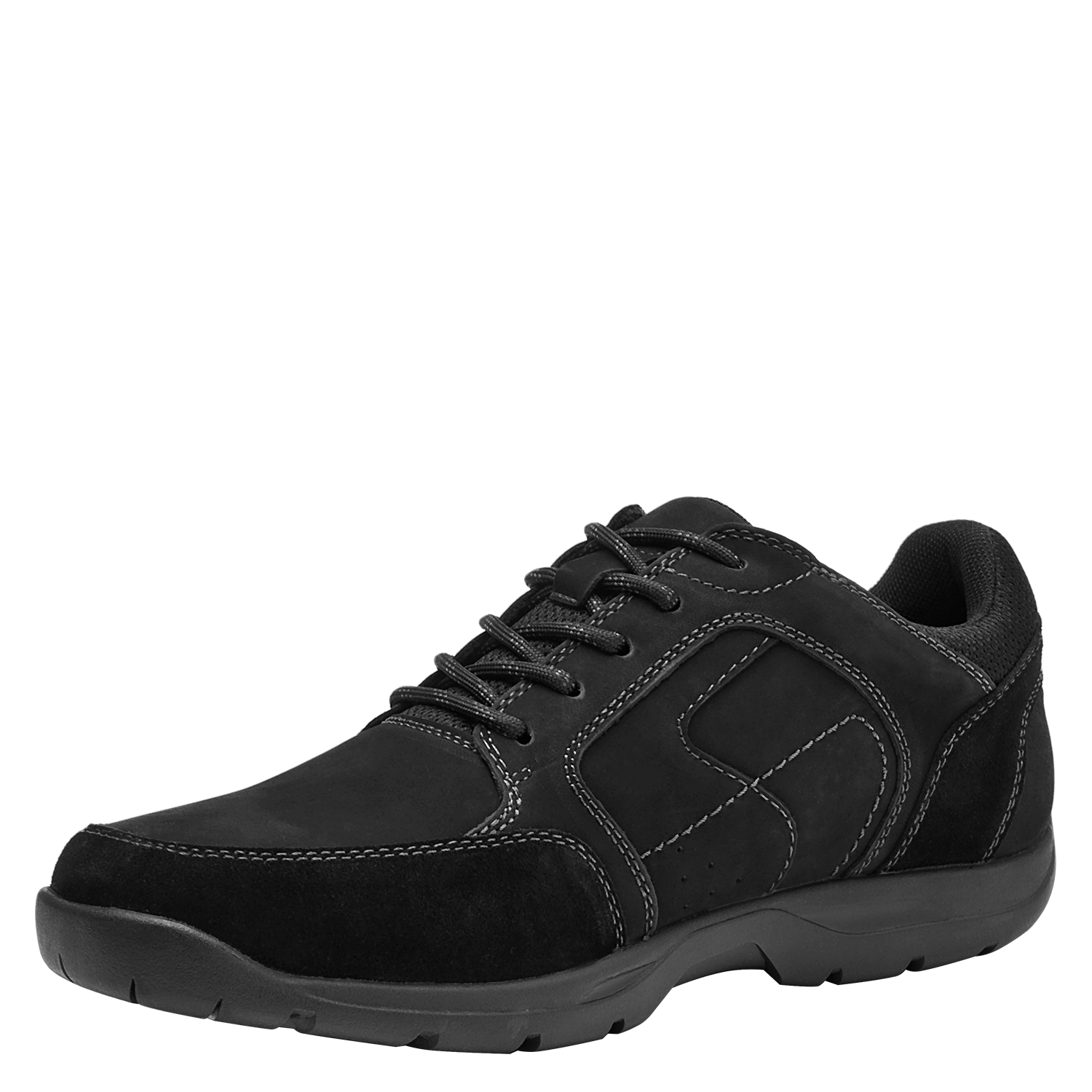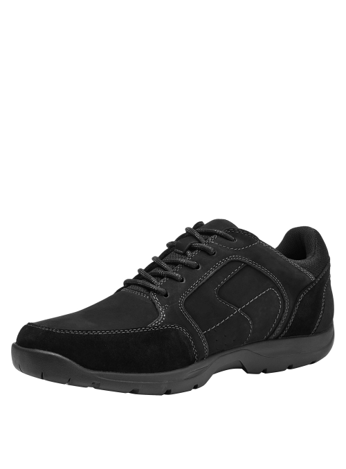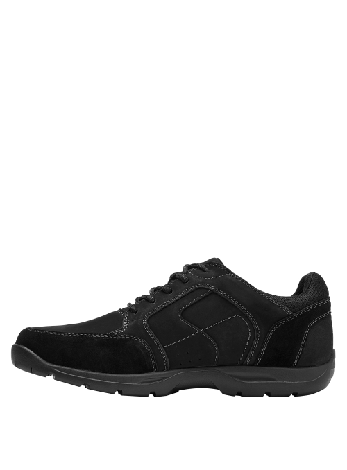 Zapato casual de cuero para hombre en color negro, con punta redonda y taco plano de 4 cm. Fabricado con exterior de cuero y forro textil, presenta un diseño de líneas clásicas y acabado sobrio que se adapta a diferentes ocasiones. Su silueta limpia y perfil urbano lo convierten en una opción versátil para la semana y el fin de semana, manteniendo un look pulcro y actual.