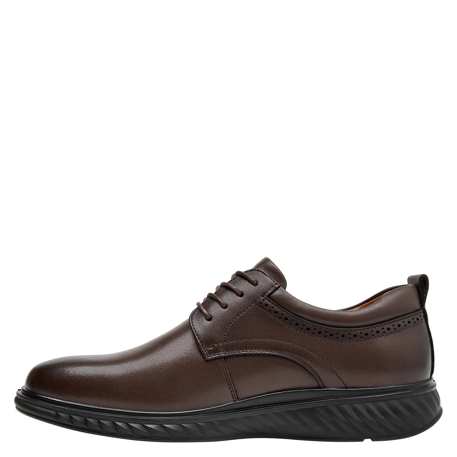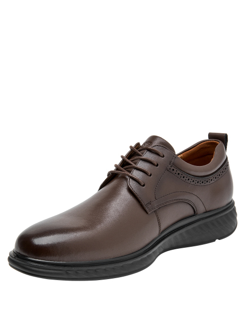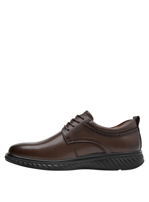 Zapato casual de cuero para hombre en color café, con punta redonda y taco plano de 3 cm. Su capellada de cuero ofrece un look sobrio y versátil, mientras el forro sintético aporta una sensación confortable. Presenta costuras discretas y una suela de perfil bajo pensada para el uso diario, con acabados limpios que funcionan en salidas informales y también en contextos semi formales.