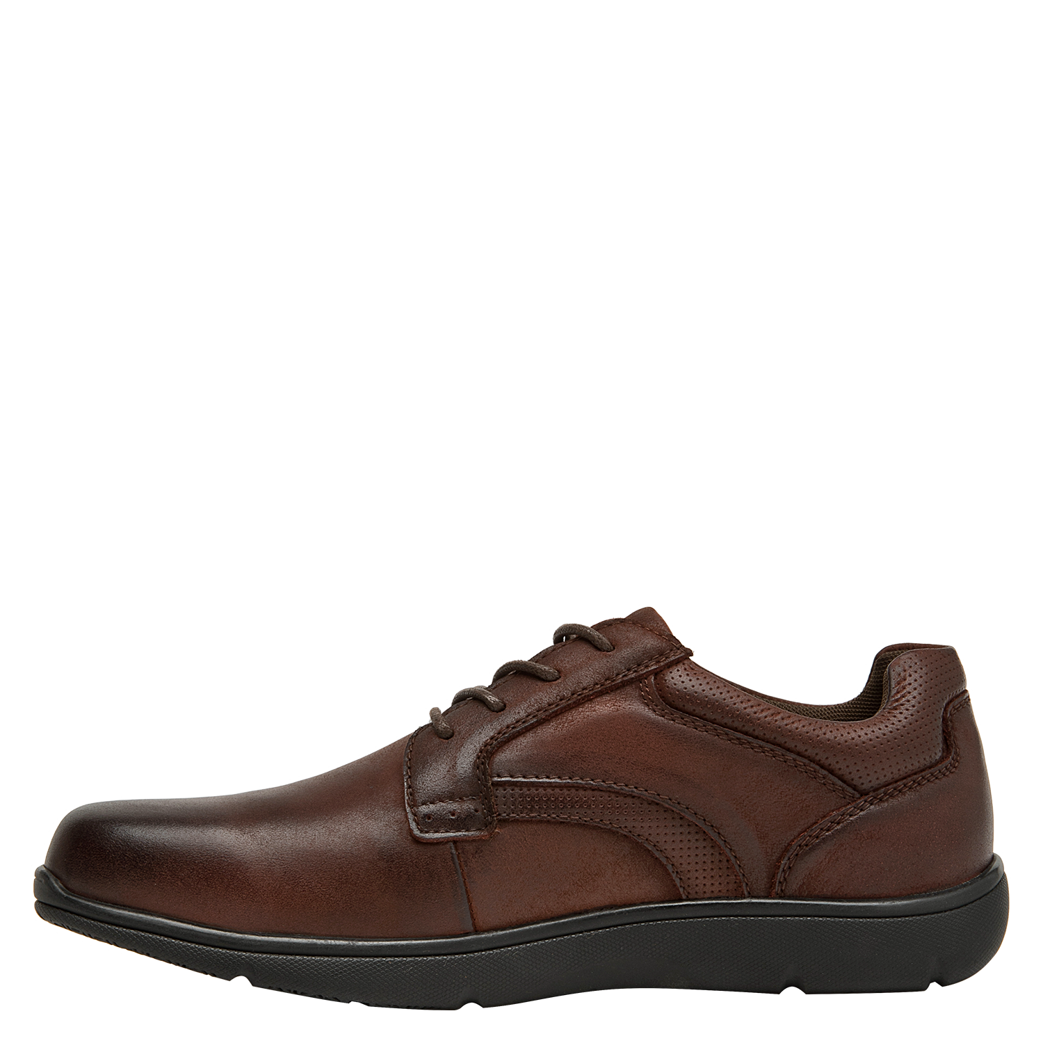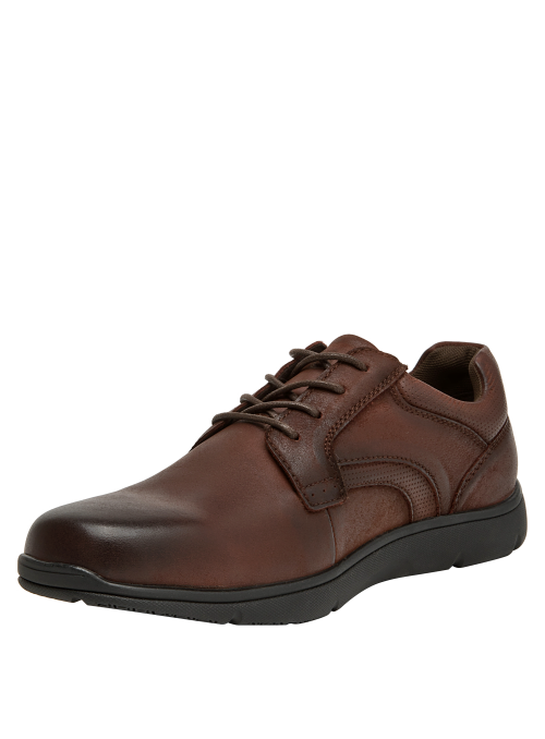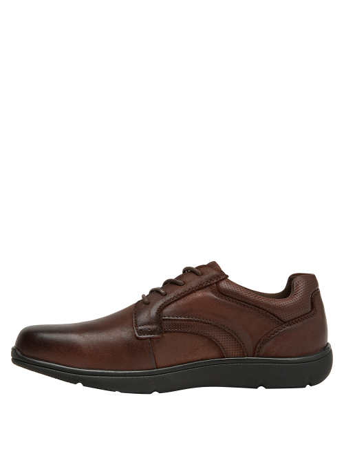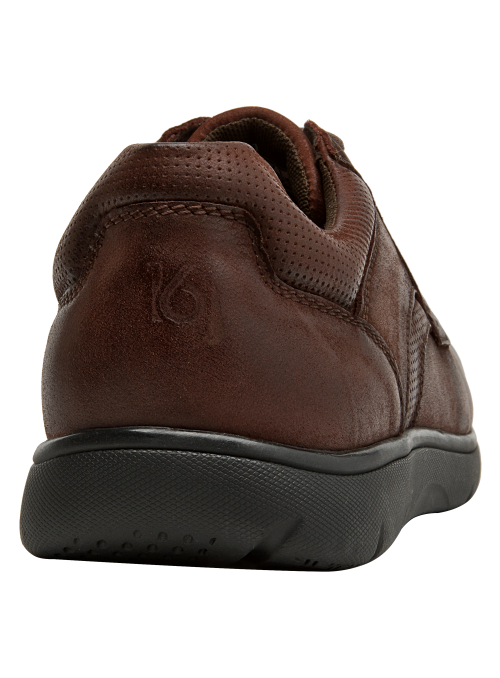 Zapato casual de cuero para hombre en color café, pensado para el día a día. Su punta redonda ofrece una silueta clásica, mientras el taco plano de 2,5 cm aporta estabilidad y comodidad en cada paso. El forro de mesh favorece la ventilación interna, ideal para mantener el pie fresco en recorridos urbanos o jornadas de trabajo. Un diseño versátil y sobrio, con terminaciones limpias que combinan fácilmente con distintos estilos.