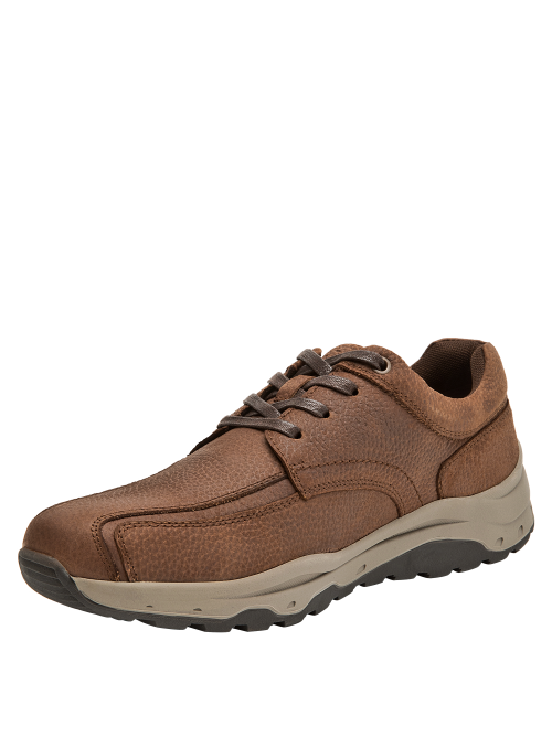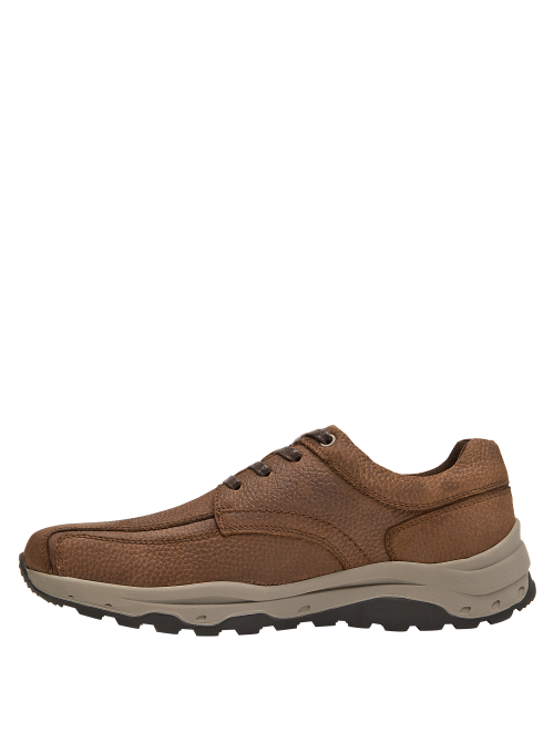 Zapato casual de cuero para hombre en color café, con punta redonda y taco plano de 4 cm. La capellada de cuero luce elegante, mientras el forro de mesh favorece la ventilación interna. Su silueta limpia y la suela de perfil bajo aportan estabilidad y un look versátil para el uso diario en distintas ocasiones.