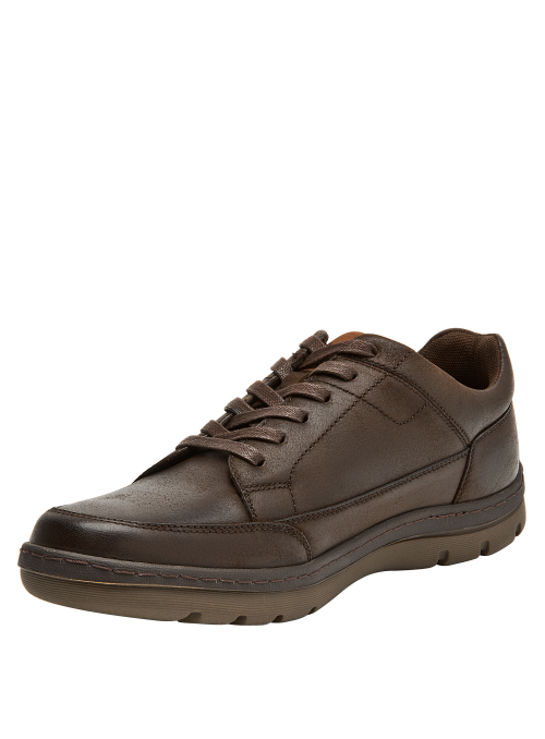 Zapatilla urbana de cuero para hombre en color café, con punta redonda y suela plana de 3,5 cm. Su capellada de cuero se complementa con forro interior de mesh que aporta respirabilidad, mientras el perfil sobrio y versátil acompaña el día a día con facilidad. Acabados limpios y construcción cuidada refuerzan su estilo atemporal.